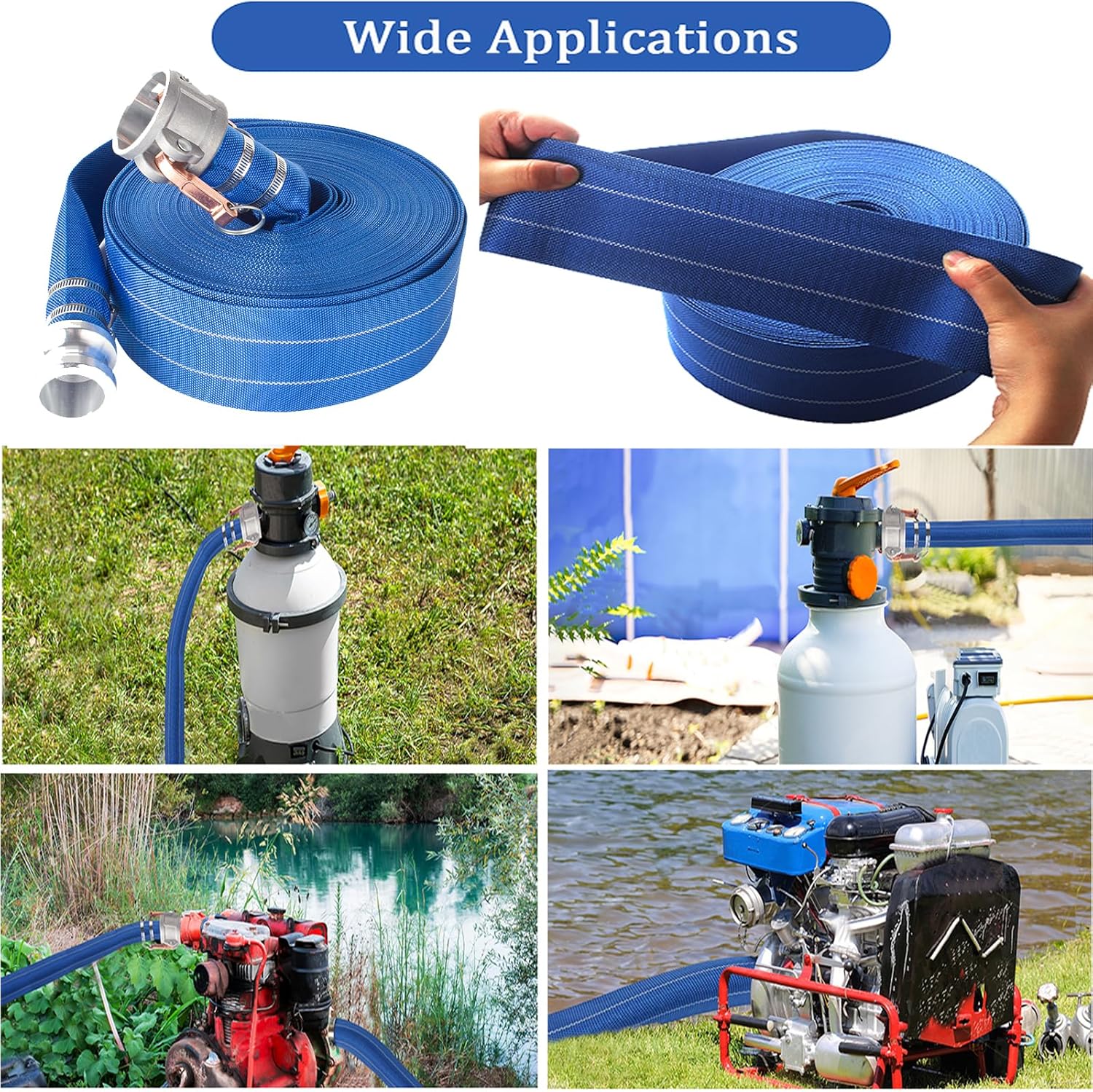• 【Wide Application】: This industrial hose is highly effective for a wide range of uses, including industrial, agricultural, construction, quarry, mining, fire-fighting equipment, marine, and various open discharge projects. It is suitable for tasks such as farmland irrigation, factory water discharge, and pool drainage, among others.