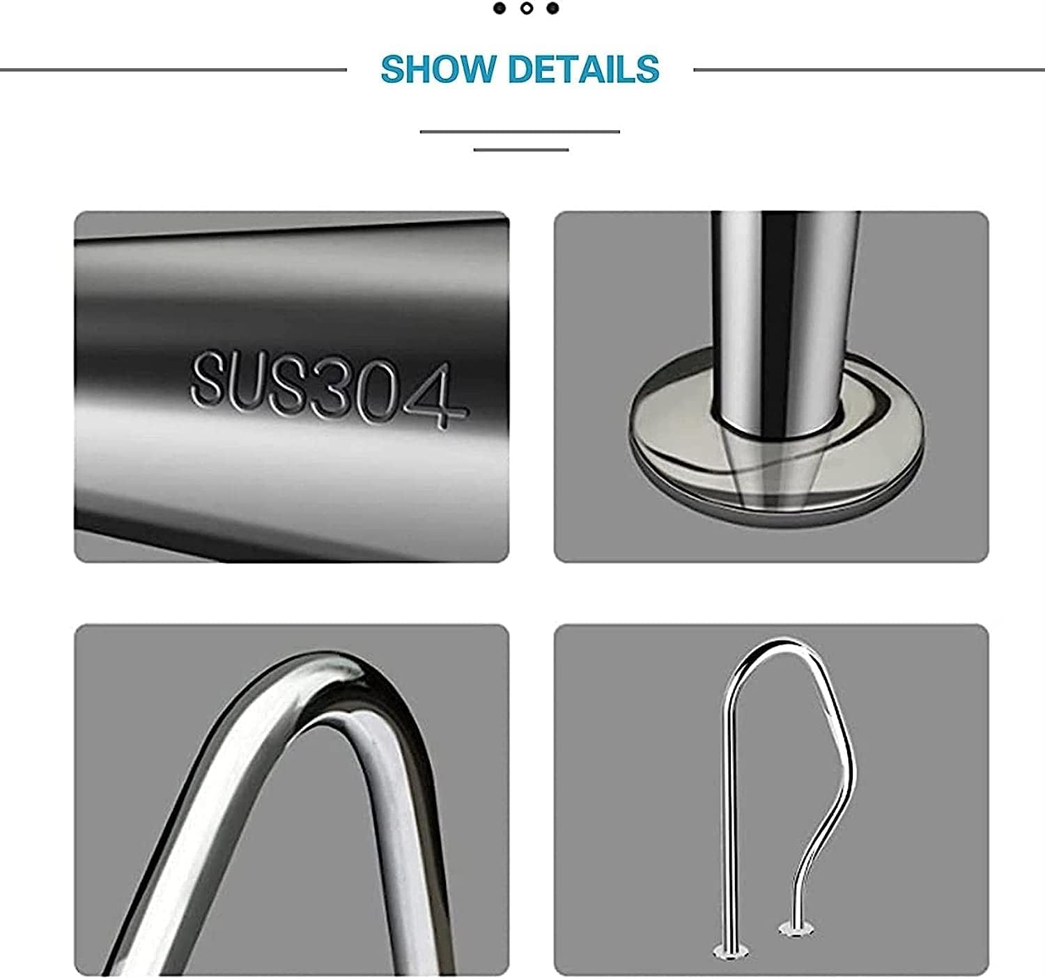 Stainless Steel Swimming Pool Hand Railings with Grip Cover,Our swimming pool handrails are made of strong and stainless steel material, strong load-bearing, anti-, strong safety, suitable for indoor and outdoor, enjoy life. ?Don't sacrifice quality for safety. This all-stainless steel handrail is perfect for any size pool. Featuring a small footprint and ensuring a safe, sturdy support for entering and exiting the water. ?Hot summer has arrived, and our swimming pool handrails will help you to enjoy the water entertainment in the pool. ?Specification - Color: Sliver - Material: 304 Stainless Steel - Product Dimension: 80x47cm - Product Thickness:1mm/1.2mm/1.5mm ?Package Include: 1 x Swimming Pool Handrails 1 set of accessories ?Feature -Premium 304 stainless-steel material is antirust and -Humanized curved structure ensures easy grasp -Polished surface with great gloss can remain for a long time -Slightly sloped design for getting in and out of the pool easily -Solid widen base plate adds extra stability and sturdiness -Quickly mounts ?Applicable Scene The handrail is the most cost-efficient choice for various places, which is suitable for swimming pool, sloped entry, spa, water park, etc. ?Note:Because manual measurement may have an error of 1-3cm, I hope you can understand.