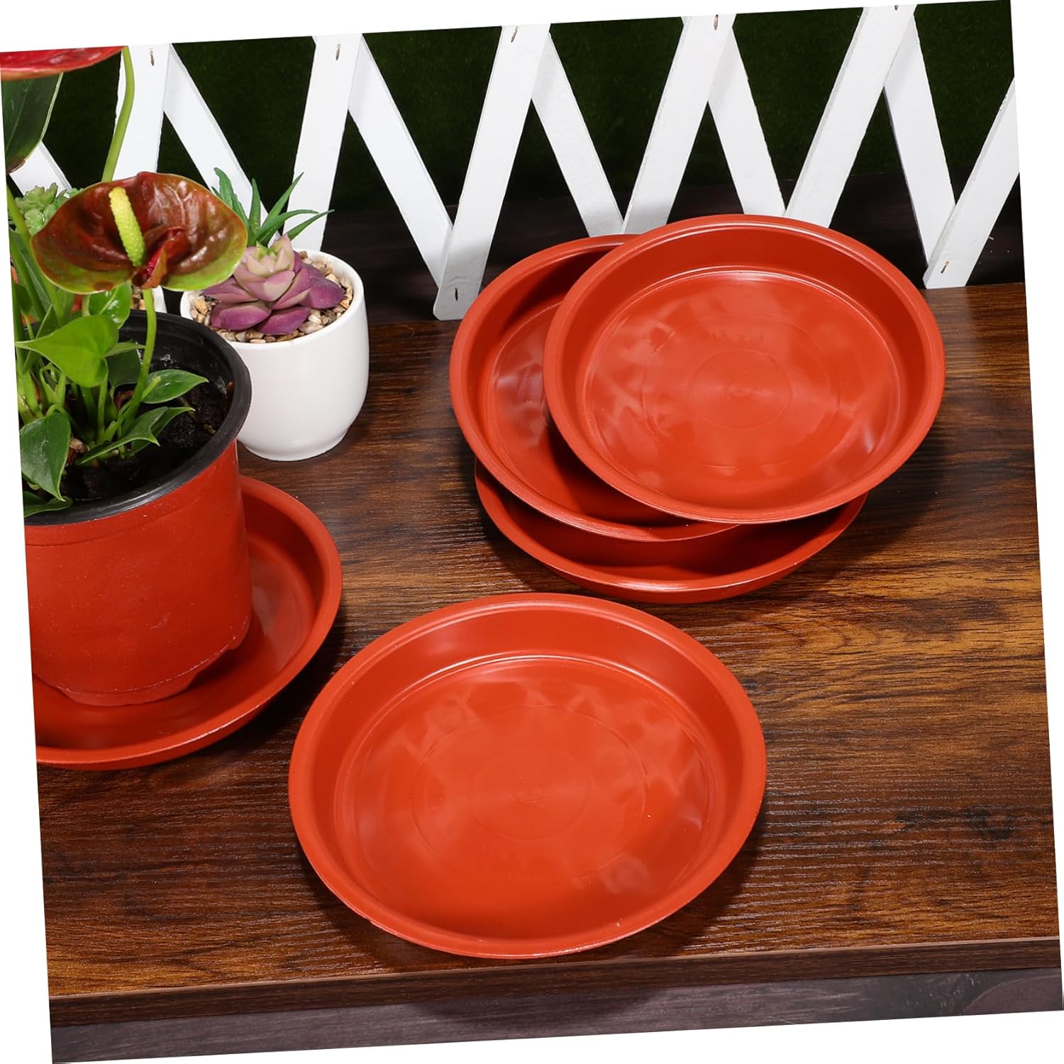 Characteristics -Material:Plastic flower pot tray -Color:Red flower pot saucers -Size:15.80X15.80X2.30cm/6.21X6.21X0.90in flowerpot saucers