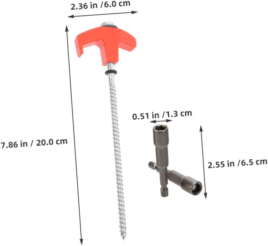 Package List 12 stakes 1 x Socket Characteristics -Size:20.00X6.00X1.80cm/7.86X2.36X0.71in(Tent Stakes) camping metal accessories -Suitable for multiple terrains: works grass and other surfaces, meeting diverse camping demands ground stakes heavy duty -Exceptional ground stability: ensures your tent stays firmly in place various outdoor conditions tent ground nail -Plenty of stakes: includes enough stakes to handle large tents or complex terrains, ensuring a secure and enjoyable camping trip tent stakes heavy duty screw -Heavyduty durability: made from materials, these stakes resist wind and pressure, keeping your tent stable in harsh weather ground anchor screw in -Color:Assorted anchors screw -Fast and easy installation: design facilitates quick into the ground, boosting setup speed screw tent stakes -Material:Carbon steel, plastic ground stakes -Size:6.50X1.30X1.30cm/2.55X0.51X0.51in(Socket) canopy anchorsGoods Descriptiontent ground nail Made from durable materials, these stakes are designed to withstand the elements and provide reliable support.outdoor tent stakes These metal stakes for ground are essential outdoor activity, providing secure anchoring for tents and .tent stakes screw The screw- offers excellent stability, preventing movement and ensuring your setup remains intact.camping metal accessories The design allows for effortless installation, making them a convenient addition to your camping gear