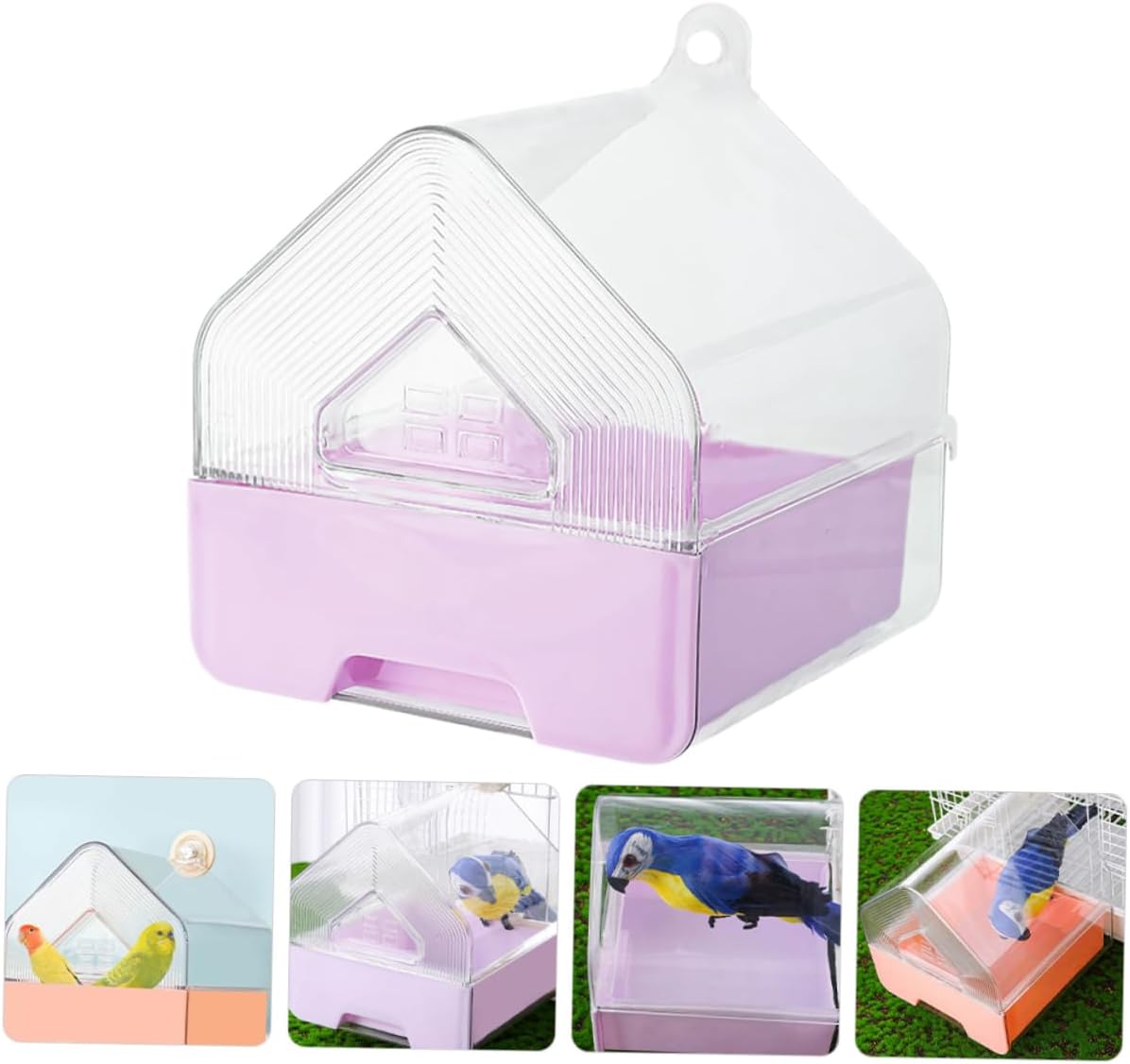Package List 2pcs Birds bathtubs Characteristics -Enhanced visibility: the transparent construction lets you monitor your activity, for fun and engaging interactions birds bath tub -Comfortable bathing: birds feel secure with the clear material that allows them to see their surroundings, making bath time less stressful and more enjoyable hanging parakeet bath -Material:Plastic pet bath basin -Size:15.40X15.00X14.80cm/6.05X5.89X5.82in pet -Versatile design: designed for multiple uses, this bathtub doubles as a drinking or feeding container, making it a practical addition to your cage pet bathing pool -Color:Pink, purple bird shower tub -Easy maintenance: the pullout drawer design cleaning, saving while ensuring a environment for your bathing routine bird cage bathtub -Compact hanging feature: ideal for small homes, the hanging design optimizes space without compromising functionality or convenience bathing accessoriesGoods Descriptionbird shower tub Crafted with a transparent design, this box offers a clear view of your pet, making it easy to keep an eye on them during bath time.parakeets bathtub The hanging feature allows for easy attachment to the birdcage, providing a secure and stable bathing environment.hanging parakeet bath Ideal for parrots and other small birds, it enhances their and well-being