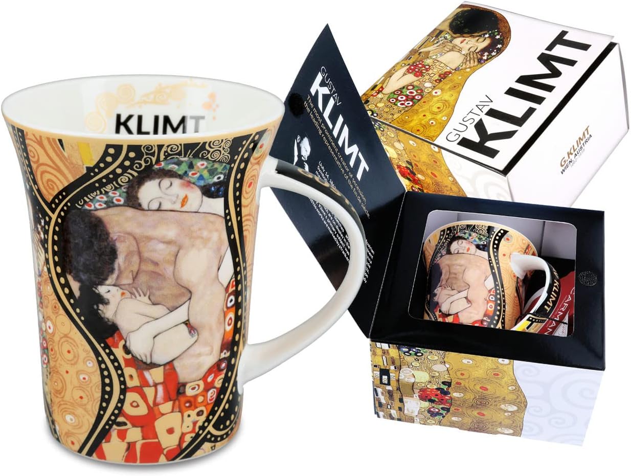 Gustav Klimt was an Austrian painter and decorator, one of the most prominent members of the Vienna Secession movement. The artistic heritage of Gustav Klimt combines several completely different styles: the distant and at the same time sensual formal language of historicism. The painting "Adam and Eve" was painted in 1917. Not completed. The original is found in the Belvedere Gallery, Vienna 12 Oz porcelain mug, printed with a painting by one of the best known Austrian artist - Gustav Klimt. The original art-inspired design combines classic form with intricate detailing of the image. This mug is a perfect way to treat yourself with a morning coffee or afternoon tea. It will be a wonderful gift for art enthusiasts.