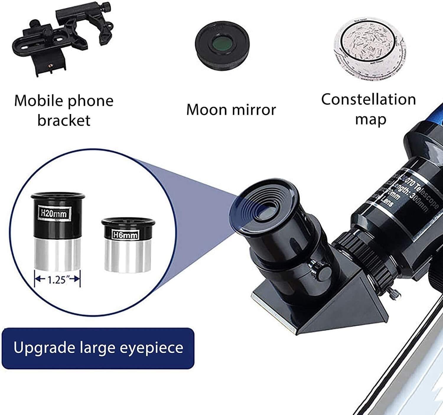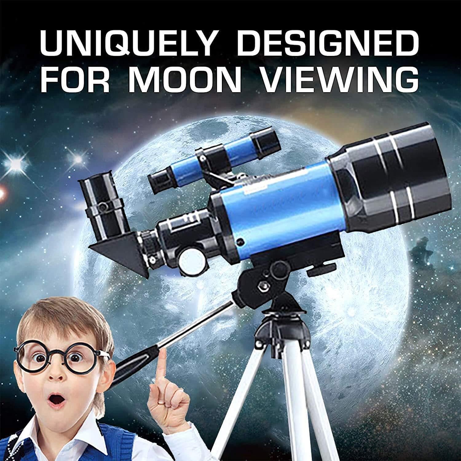 Discover the wonders of the night sky with the Portable 150X Astronomical Refractor Telescope. Designed for both beginners and advanced stargazers, this telescope offers impressive 15X to 150X magnification, perfect for observing celestial bodies like the moon, stars, and planets. Whether you're a first-time astronomer or looking to upgrade your equipment, this portable telescope is easy to use and offers optics for an enhanced viewing experience.Equipped with a 70mm aperture and 360mm focal length, the telescope ensures bright and clear images. The full multilayer optical coating maximizes light transmission, providing vivid and sharp views while protecting your eyes. The adjustable aluminum alloy tripod offers stability, and the 90° mirror ensures comfortable viewing angles. The 5x24 finder scope allows easy object positioning, while the 1.5x Barlow lens and 3x Barov lens offer additional magnification options.This telescope is perfect for adults, children, and beginners who are e to explore the stars and the moon. It encourages scientific curiosity and offers a great way for kids to develop a deeper understanding of astronomy. The phone holder allows you to capture images of your observations, while the moon filter reduces glare, making it ideal for long viewing sessions.The Portable 150X Astronomical Refractor Telescope is an excellent gift for anyone with a fascination for space and nature, perfect for birthday and holiday gifts. Whether you're stargazing in your backyard or traveling, this lightweight, telescope is ready to accompany you on your journey of discovery.