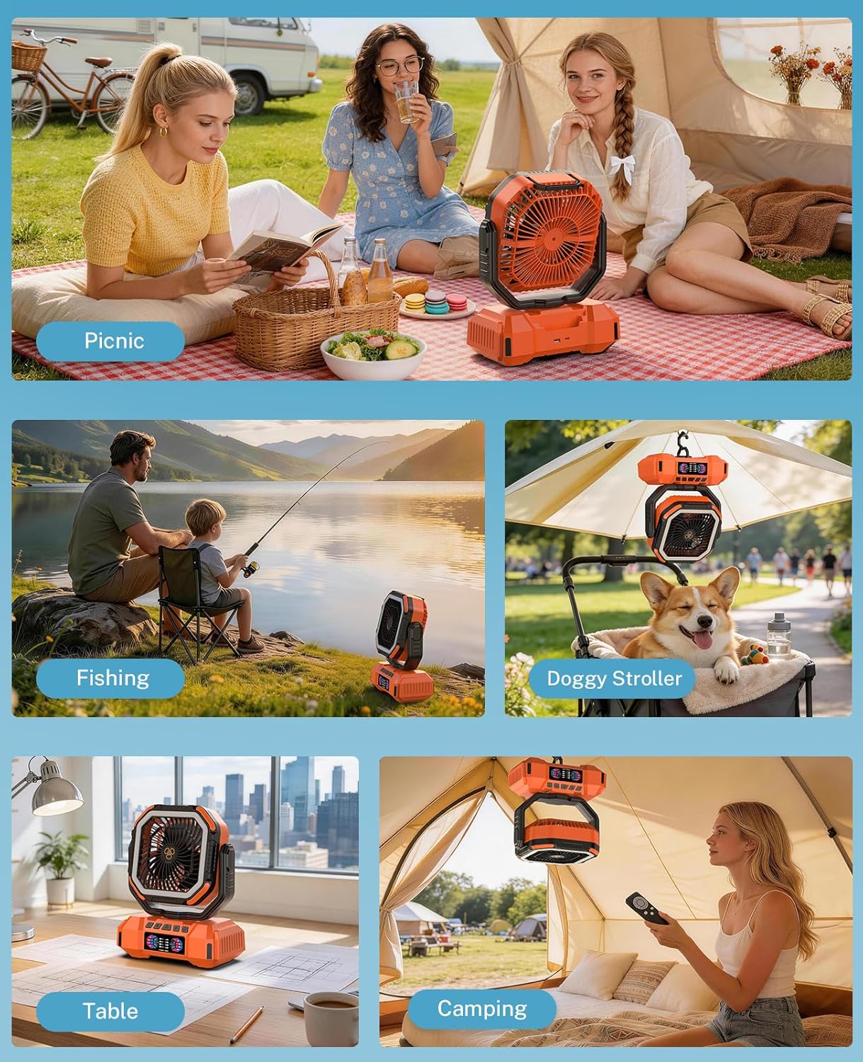 | Room Type | Camping, Picnic, Hiking, Fishing, RV trips/Camper Travel, Tents, Beach, Forklift Truck Working, Table, Desk, Gym Room, Gazebo, Patio, Workshops, Garage, Bedrooms, Offices, Dorm Rooms, Watching Sports Events |