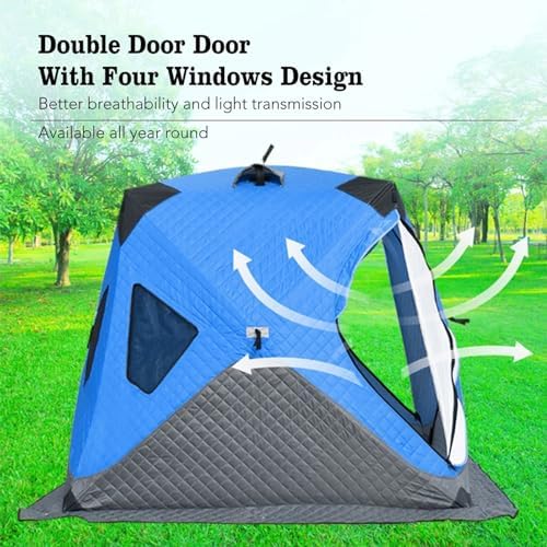 Experience the ultimate outdoor adventure with our Ice Fishing Tent, designed for 3-4 people, perfect for winter camping and fishing enthusiasts. This portable and lightweight angler tent is engineered for easy setup, featuring a simple pull mechanism that allows it to pop up effortlessly, making it ideal for quick getaways. Constructed with durable 210D oxford cloth and a 120g cotton inner layer, this tent provides excellent insulation against the cold and seals out wind, ensuring you stay warm and cozy regardless of the weather conditions. The double-door design enhances ventilation, allowing fresh air to circulate while keeping out unwanted elements, making it a thoughtful choice for your outdoor activities. Our tent boasts a robust 11mm bracket structure, ensuring stability and reliability in windy conditions. The cotton-padded fabric adds an extra layer of warmth, enhancing your overall camping experience. With a transparent three-layer window design, you can enjoy natural light while remaining protected from the elements—featuring an outer mesh layer for ventilation, a clear middle panel for visibility, and an inner fabric layer for privacy. Whether you're ice fishing in a serene lake or enjoying a winter camping trip with friends, our Ice Fishing Tent offers the comfort and functionality you need. Dimensions of 200*200*175 cm (78.7*78.7*68.9 in) provide ample space for you and your gear, while the compact packaging size of 24*24*135 cm (9.4*9.4*53.1 in) makes it easy to transport. Weighing only 13,000g (28.7 lb), it's designed for convenience without compromising on quality. Included in the package are the tent, four ice nails for secure anchoring, and a windproof rope for added stability. Elevate your outdoor experience with our Ice Fishing Tent—where adventure meets comfort.