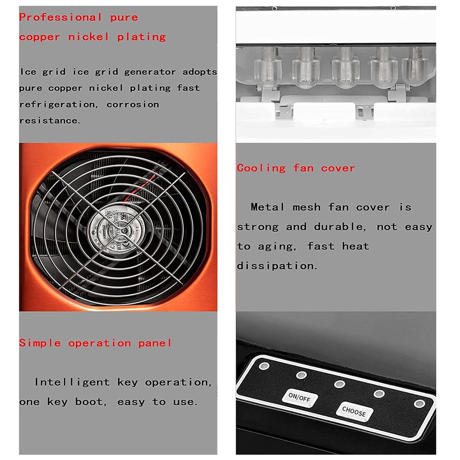 Features: Humanized - No installation + Stainless steel material ETL certified - Better and more quality than other ice makers. Bullet Ice cube - Two sizes are available Easy to clean - Strong and anti-scratch, and easy to clean The stylish and high-end look is ideal for your kitchen, bars, RV, boat, restaurants, and anywhere . Specification: Product name: ice maker small home ice maker kitchen party bar ice cube maker Product material: Stainless steel Rated voltage: 220V-240V /50Hz Power: 105W Ice storage:0.6KG/60 pcs Single ice: 9 pieces Single ice time: 6-13minutes 24H ice out: 15KG Water inlet method: manual Ice cube shape: bullet type Water addition (liter): 2 L Net weight of the machine: 7 Kg Product size: 222X 313 X 320mm Tips: You'd better put the ice maker upright for at least 24 s before using it.