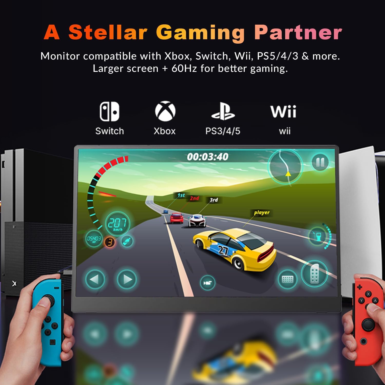 DPJJ Portable 15.6-Inch Full HD IPS Monitor – Dual USB-C, HDR, Eye CareVivid IPS Display with Eye Care: Enjoy crisp visuals with 1920x1080P Full HD resolution, a 178° wide viewing angle, and HDR technology. The Low Blue Light A-grade IPS screen reduces eye strain, making it perfect for long work or gaming sessions.Dual Type-C for Plug & Play: Featuring two full-function USB-C ports and one Mini HDMI port, this portable monitor allows effortless connection to laptops, phones, gaming consoles, and more. No drivers or apps required—just plug and play with a single USB-C cable.Built-in Stand & Travel-Ready Design: Weighing just 2.7 lbs, this monitor is ultra-portable, making it ideal for on-the-go use. The built-in adjustable stand provides the perfect viewing angle, and with VESA mount compatibility and dual speakers, it's ready for both business and entertainment.Flexible Display Modes: Supports Mirror Mode, Extend Mode, and Second Screen Mode, perfect for business meetings, multitasking, or entertainment. HDR support and screen rotation options provide versatility and comfort in any setting.Wide Compatibility, No Setup Needed: Compatible with all HDMI and USB-C devices, including laptops, MacBooks, PS, Xbox, and Switch. Its plug-and-play design ensures a hassle-free experience, and for stable operation, use a 5V/2A power source if the screen flickers or turns off.