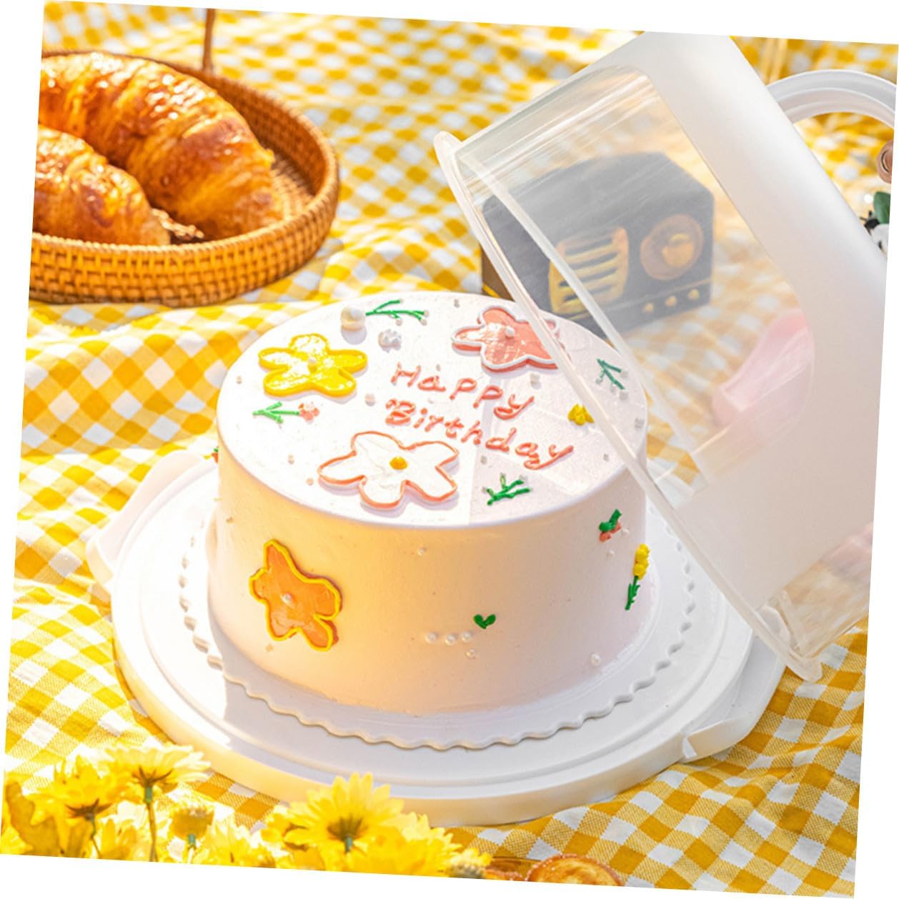 Package List 1 x Cake Box Characteristics -Product Info:Cake box -Size:28.00X28.00X17.50cm/11.00X11.00X6.88in -Material:PP -Color:White - With a handle, the cake carrier is perfect for packaging cake for outdoor camping use cake carrier. - Perfect for wrapping candies, sweets, cookies or any small you want to give cake cases. - It is easy to clean, washable and reusable, . You do not have to be nervous when transporting baked goods, light and easy to transport cake holder with cover. - The cake carrier is made of , waterproof and oil-proof, protecting your cakes from all sides. - With a lid, it is used for storing and protecting your products and items, especially cakes cake packing holder.Goods Informationcake packing holder The cake carrier with handle and lid will make your packaging easier and more beautiful.cake carrier with lid What are you waiting for? Hurry up and have it.cake carrier with handle Our can be used for cakes, desserts and are perfect for weddings, birthdays, parties and holiday celebrations