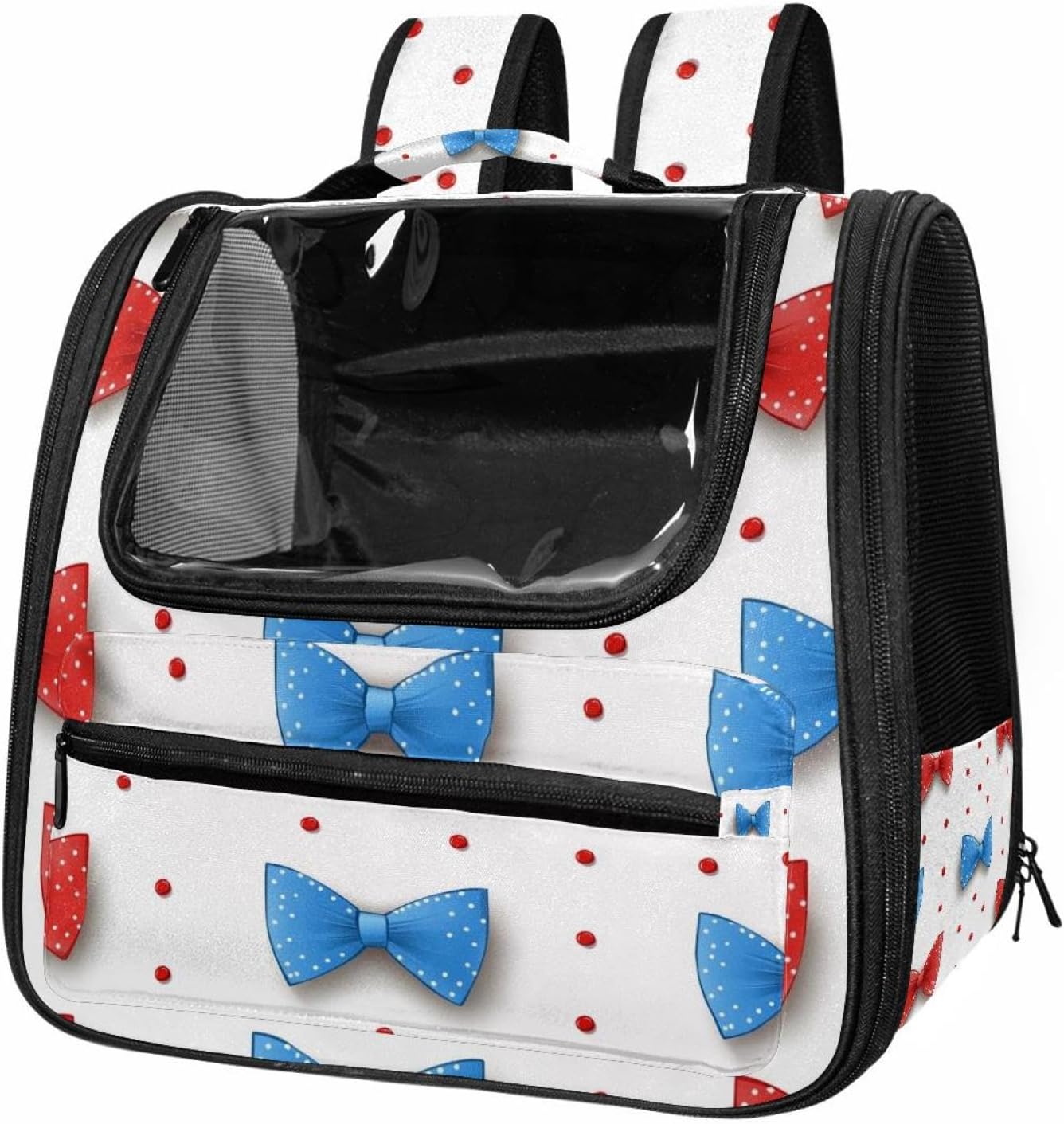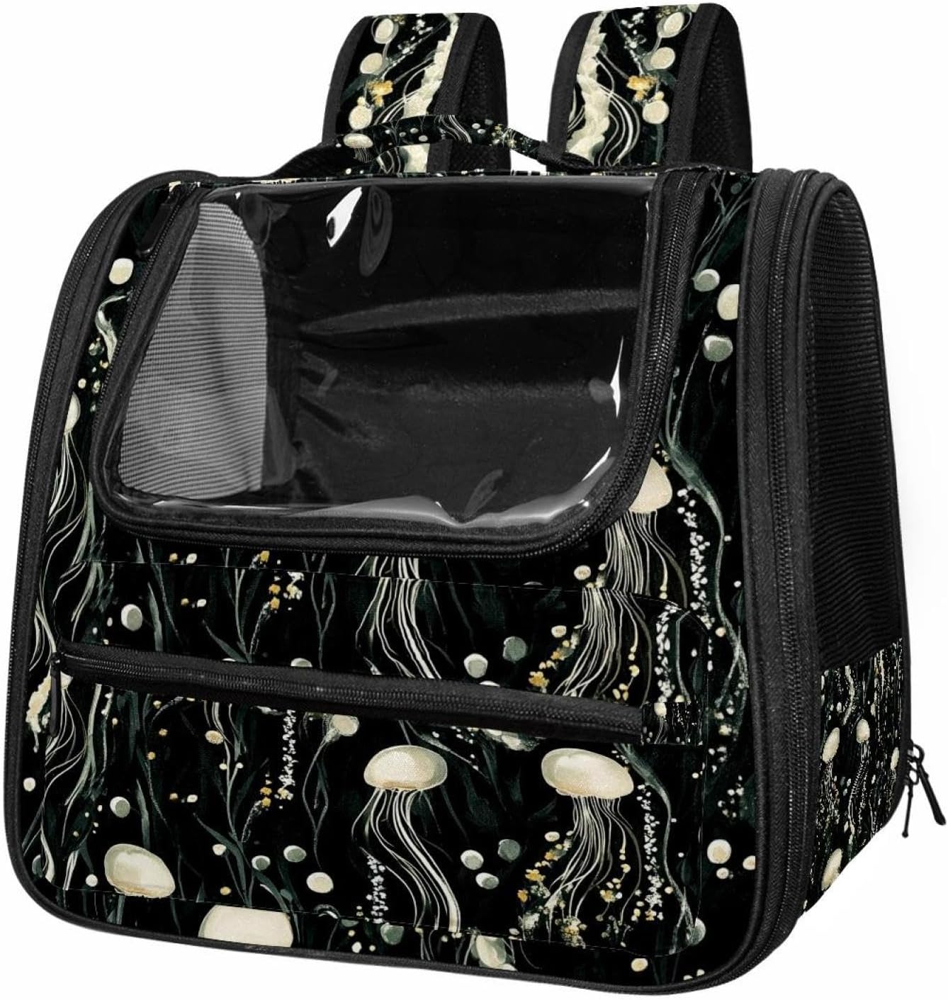 Well made: Cat Backpack Carrier is made from 900D oxford fabric, pp webbing, velvet, nylon, which is very sturdy, environmentally friendly and breathable. Not easily scratched by pet’s claws, pet backpack carrier is SAFETY & ANTI-SCRATCH. The back padding will give you a comfortable and breathable experience. Ventilated Backpack: With a breathable window in the front, this pet backpack allows cats to enjoy the sun without feeling stuffy. There are two side pockets and one big front pocket, and you can take foods or toy for your kitten pet. It is big enough for cat to turn around, and there are side pockets and hook holes, you will enjoy the greatest convenience when taking your cat out. Perfect size: Cat carrier is 15.75x9.84x13.78in/40x25x35cm. Fits most small/medium sized cat, dog, and pet. Quality fleece bed provide a comfortable place for your pet. Lightweight and easy to carry to all places. Built-in harnesses keep your naughty friends from escaping. Removable cosy mat for easier cleaning and let your pet enjoy it inside. Easy to carry: The adjustable shoulder strap of pet carrier bag help you hands-free carrying and makes it the most safe and convenient pet carrier bag for your travel. Seat belt design provide pets with safety protection throughout the trip. Pad protection keep your pets comfortable during travel. Unique Design: Innovative inside graphic design gives you a stereoscopic 3D visual experience. You also send us the photos you interest to make your unique dog or cat carrier. Pet bag is also a amazing gift for pet lover.