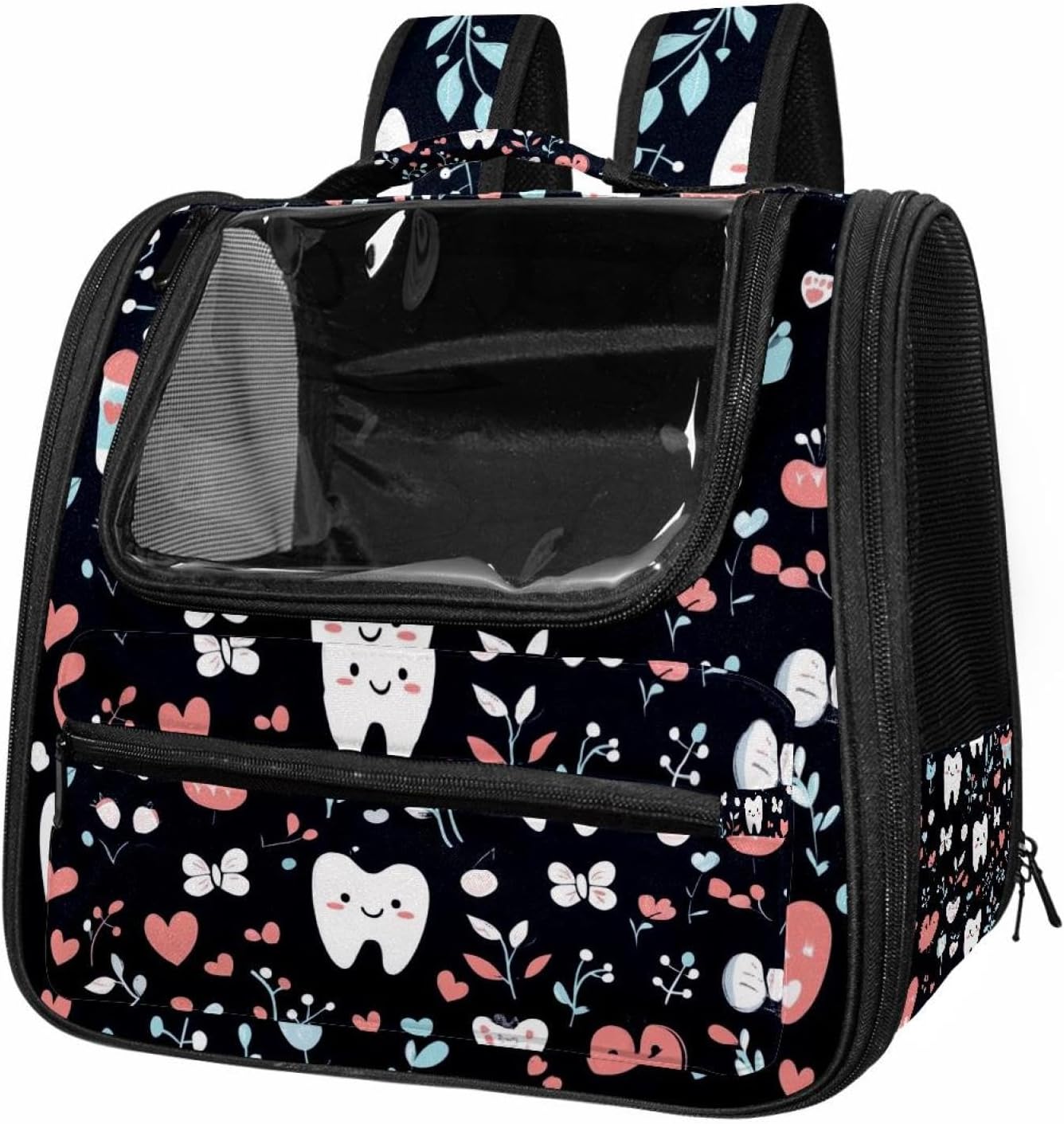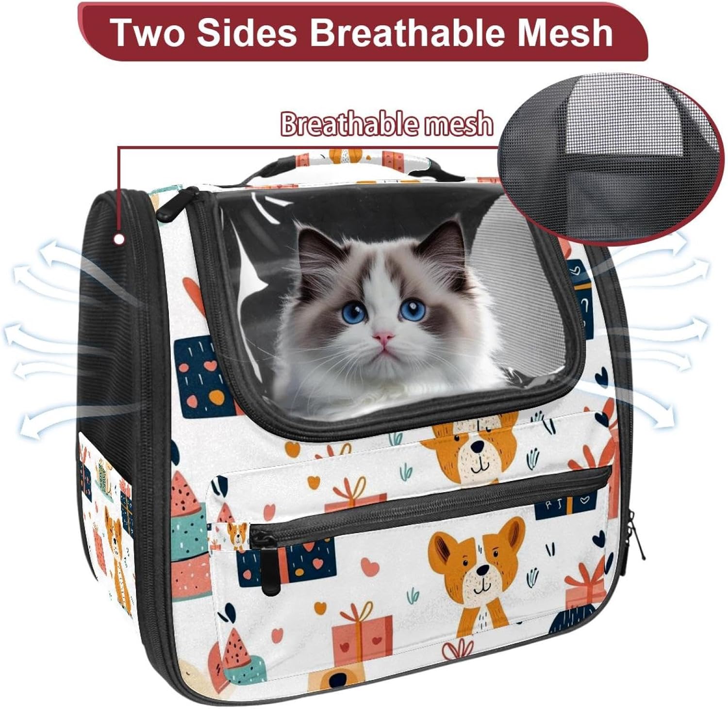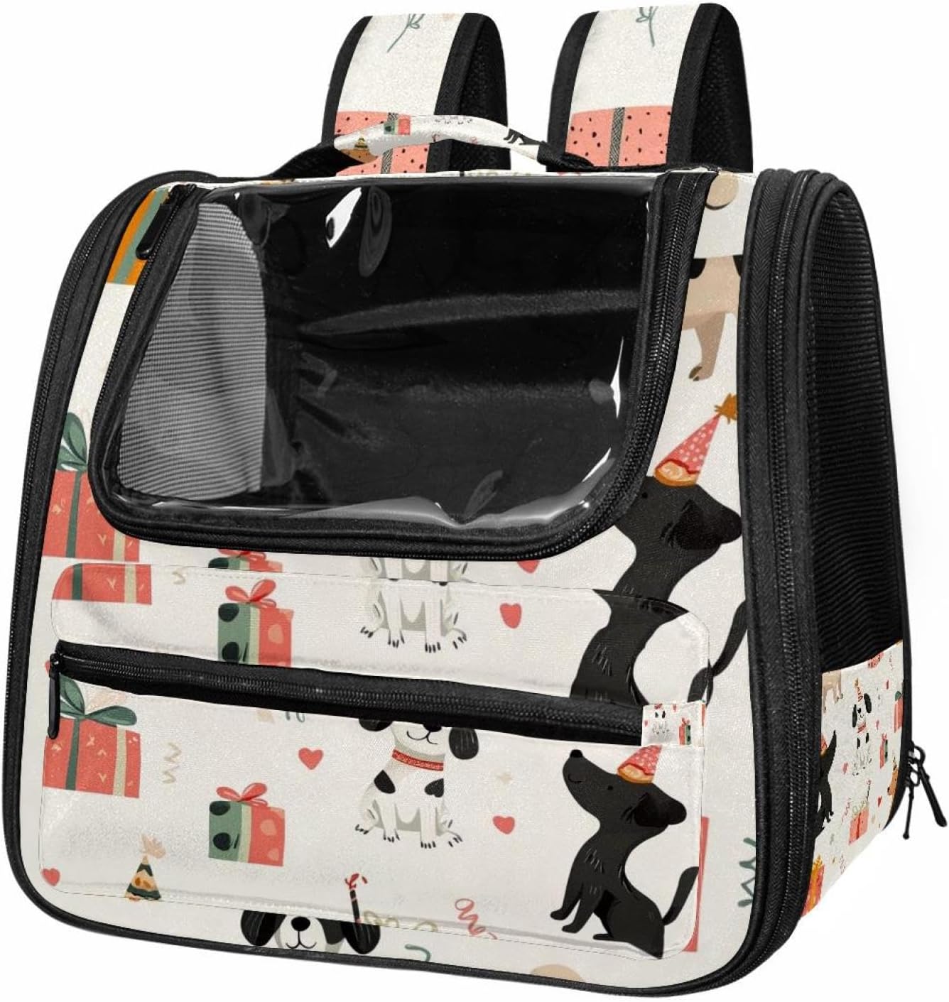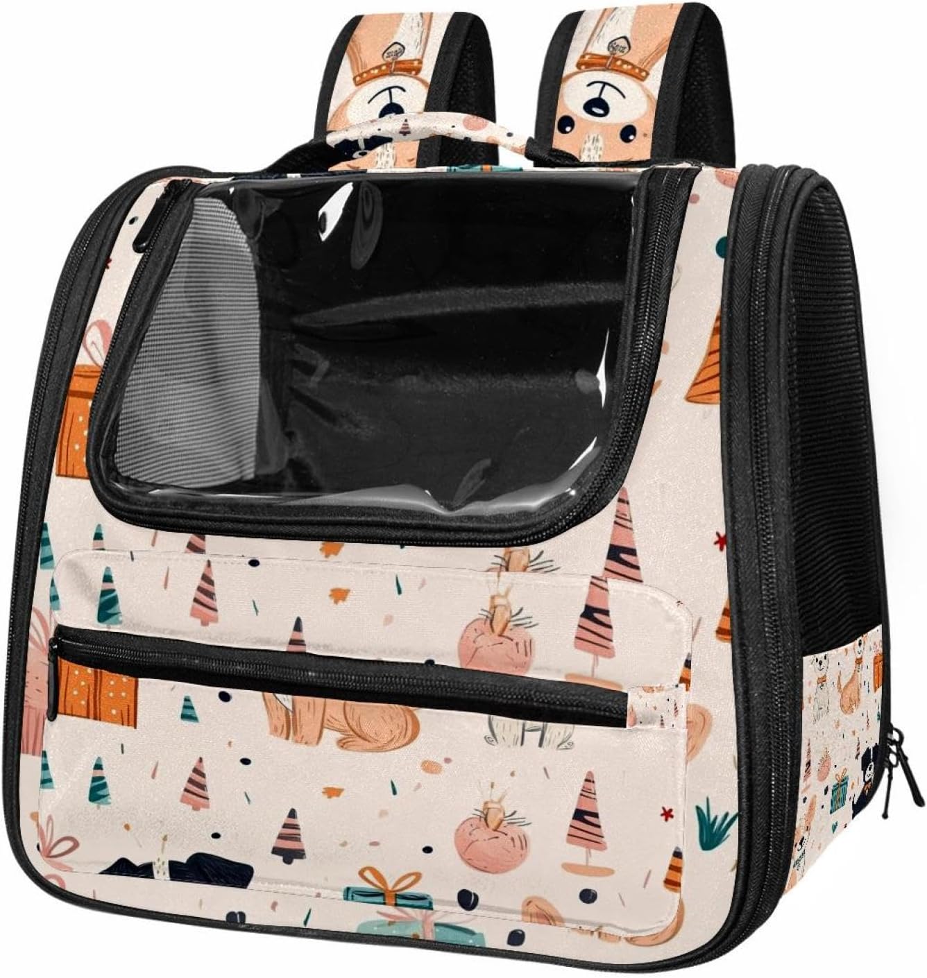 Well made: Cat Backpack Carrier is made from 900D oxford fabric, pp webbing, velvet, nylon, which is very sturdy, environmentally friendly and breathable. Not easily scratched by pet’s claws, pet backpack carrier is SAFETY & ANTI-SCRATCH. The back padding will give you a comfortable and breathable experience. Ventilated Backpack: With a breathable window in the front, this pet backpack allows cats to enjoy the sun without feeling stuffy. There are two side pockets and one big front pocket, and you can take foods or toy for your kitten pet. It is big enough for cat to turn around, and there are side pockets and hook holes, you will enjoy the greatest convenience when taking your cat out. Perfect size: Cat carrier is 15.75x9.84x13.78in/40x25x35cm. Fits most small/medium sized cat, dog, and pet. Quality fleece bed provide a comfortable place for your pet. Lightweight and easy to carry to all places. Built-in harnesses keep your naughty friends from escaping. Removable cosy mat for easier cleaning and let your pet enjoy it inside. Easy to carry: The adjustable shoulder strap of pet carrier bag help you hands-free carrying and makes it the most safe and convenient pet carrier bag for your travel. Seat belt design provide pets with safety protection throughout the trip. Pad protection keep your pets comfortable during travel. Unique Design: Innovative inside graphic design gives you a stereoscopic 3D visual experience. You also send us the photos you interest to make your unique dog or cat carrier. Pet bag is also a amazing gift for pet lover.