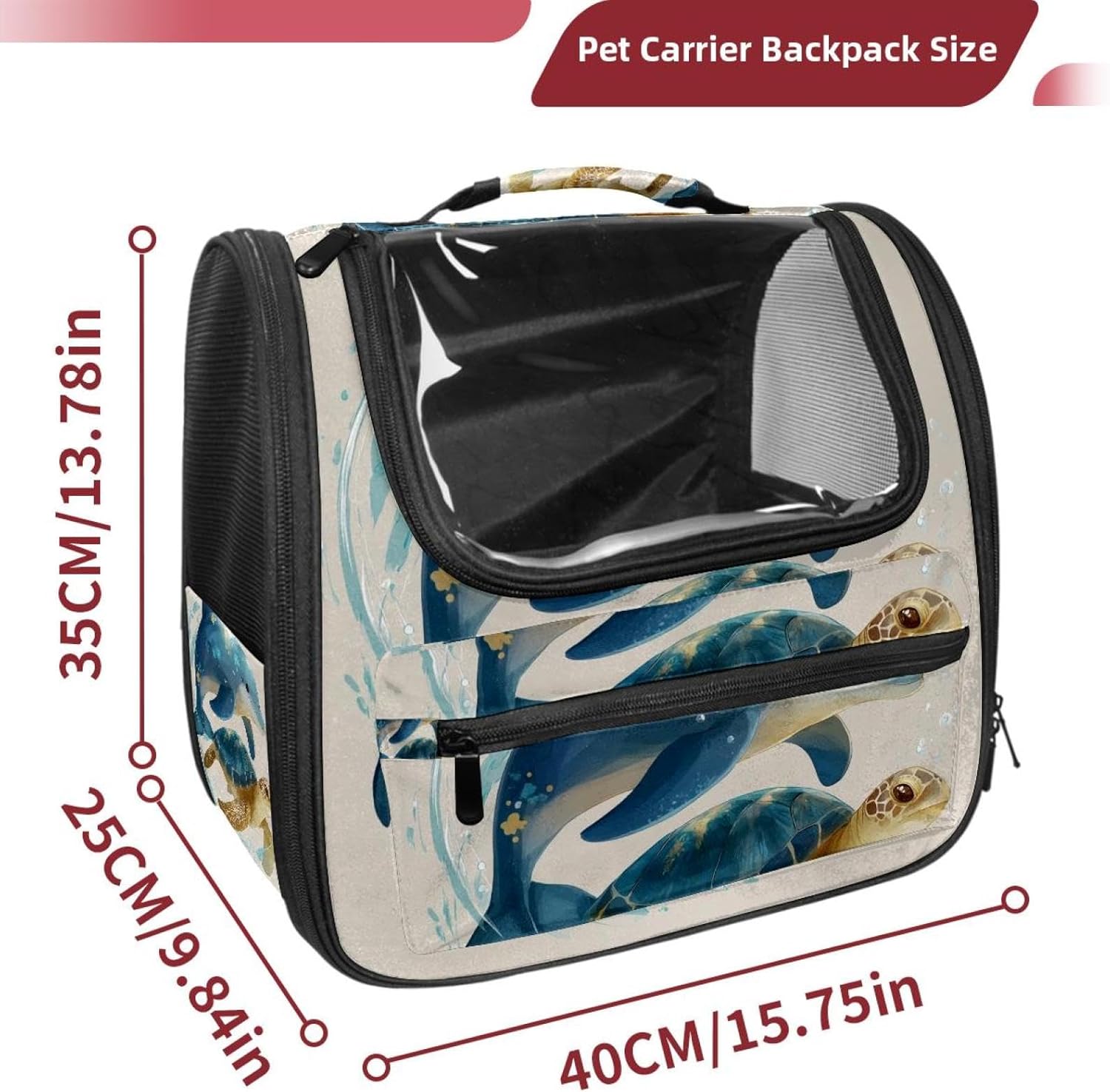 Well made: Cat Backpack Carrier is made from 900D oxford fabric, pp webbing, velvet, nylon, which is very sturdy, environmentally friendly and breathable. Not easily scratched by pet’s claws, pet backpack carrier is SAFETY & ANTI-SCRATCH. The back padding will give you a comfortable and breathable experience. Ventilated Backpack: With a breathable window in the front, this pet backpack allows cats to enjoy the sun without feeling stuffy. There are two side pockets and one big front pocket, and you can take foods or toy for your kitten pet. It is big enough for cat to turn around, and there are side pockets and hook holes, you will enjoy the greatest convenience when taking your cat out. Perfect size: Cat carrier is 15.75x9.84x13.78in/40x25x35cm. Fits most small/medium sized cat, dog, and pet. Quality fleece bed provide a comfortable place for your pet. Lightweight and easy to carry to all places. Built-in harnesses keep your naughty friends from escaping. Removable cosy mat for easier cleaning and let your pet enjoy it inside. Easy to carry: The adjustable shoulder strap of pet carrier bag help you hands-free carrying and makes it the most safe and convenient pet carrier bag for your travel. Seat belt design provide pets with safety protection throughout the trip. Pad protection keep your pets comfortable during travel. Unique Design: Innovative inside graphic design gives you a stereoscopic 3D visual experience. You also send us the photos you interest to make your unique dog or cat carrier. Pet bag is also a amazing gift for pet lover.
