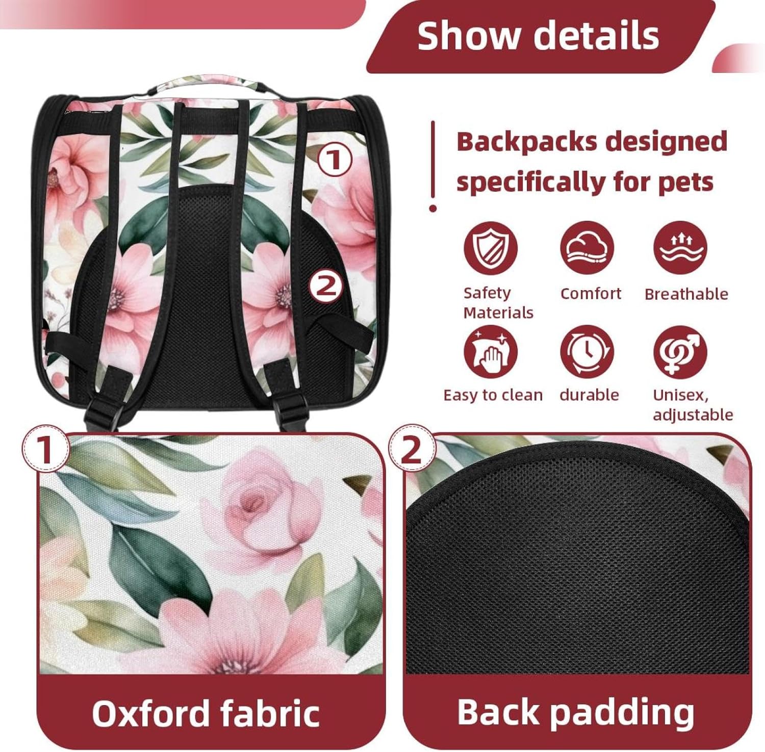 Well made: Cat Backpack Carrier is made from 900D oxford fabric, pp webbing, velvet, nylon, which is very sturdy, environmentally friendly and breathable. Not easily scratched by pet’s claws, pet backpack carrier is SAFETY & ANTI-SCRATCH. The back padding will give you a comfortable and breathable experience. Ventilated Backpack: With a breathable window in the front, this pet backpack allows cats to enjoy the sun without feeling stuffy. There are two side pockets and one big front pocket, and you can take foods or toy for your kitten pet. It is big enough for cat to turn around, and there are side pockets and hook holes, you will enjoy the greatest convenience when taking your cat out. Perfect size: Cat carrier is 15.75x9.84x13.78in/40x25x35cm. Fits most small/medium sized cat, dog, and pet. Quality fleece bed provide a comfortable place for your pet. Lightweight and easy to carry to all places. Built-in harnesses keep your naughty friends from escaping. Removable cosy mat for easier cleaning and let your pet enjoy it inside. Easy to carry: The adjustable shoulder strap of pet carrier bag help you hands-free carrying and makes it the most safe and convenient pet carrier bag for your travel. Seat belt design provide pets with safety protection throughout the trip. Pad protection keep your pets comfortable during travel. Unique Design: Innovative inside graphic design gives you a stereoscopic 3D visual experience. You also send us the photos you interest to make your unique dog or cat carrier. Pet bag is also a amazing gift for pet lover.