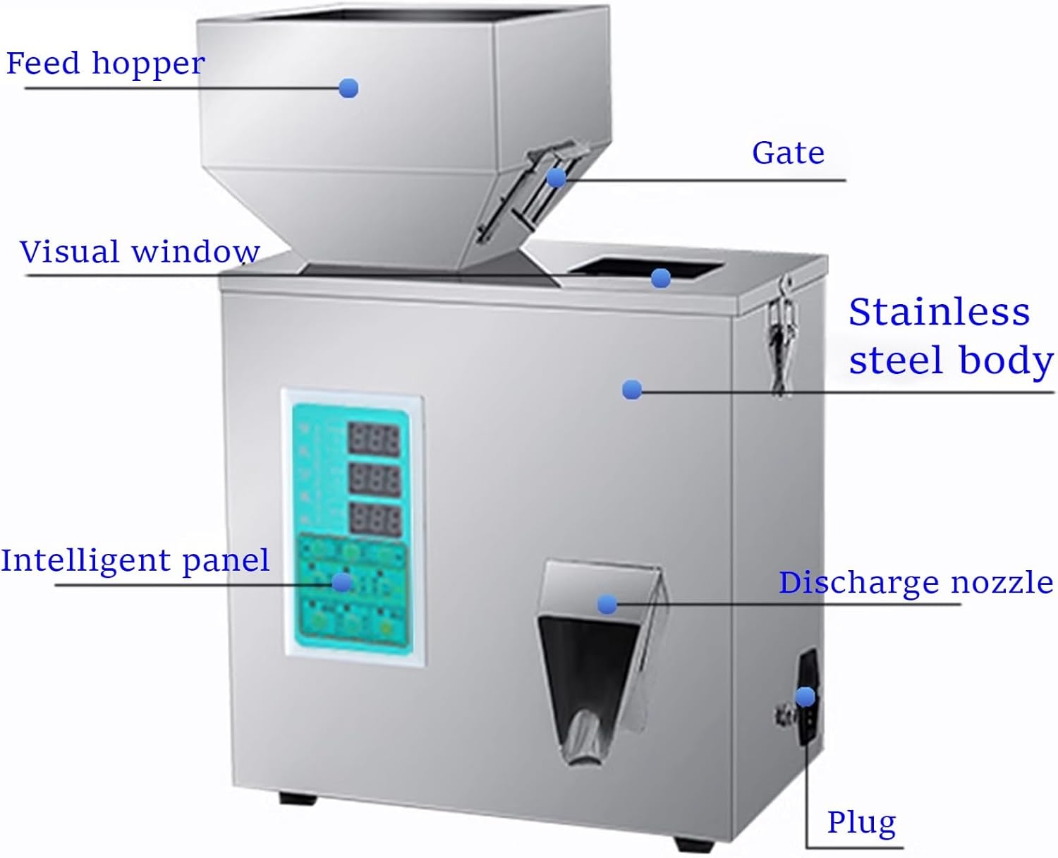 HOLGVE Filling machine meet the needs of different filling materialsCrafted from food-grade materials for security, it is ideal for homes and workshopsOn the side of the external storage hopper of granule filling machine there is a transparent visualization port, you can observe the material discharging situation inside at any timeSpecificationProduct Name: Powder Filling MachineDriven Type: ElectricMaterial: 304 Stainless steelVoltage: 220V 50HZ(customizable 110V)Package Included: Machine + Power cord Notes:1. Please allow the slight color difference caused by the shooting light and 1-3cm error due to manual measurement. Please make sure you do not mind before you order.