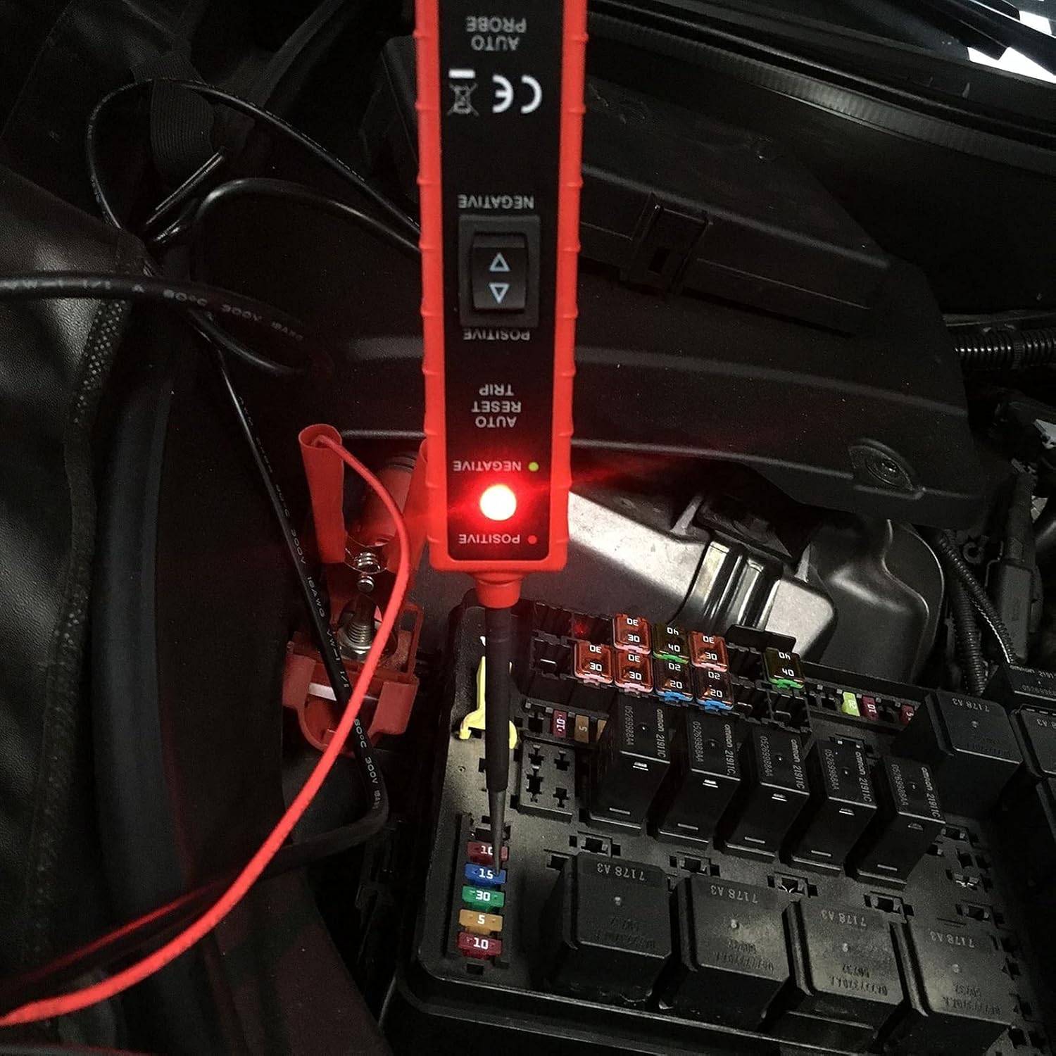 Multiple functions This power probe can text the voltage polarity, check switches, relays and the on-off of diodes, fuses and circuits, track and locate short circuits. Long cable This power probe comes with a 4meter/157.2inch cable, which allows you test any electrical system easily. Highly sensitive This power probe is highly sensitive and has short-circuit protection and can test for bad ground contacts instantly. Easy to use This power probe is easy to use, no any complicated process, convenient and practical. Wide applications This power probe can test polarity of electric cables and plug, suitable for truck, car manufacturing. Specifications: Item type: power probe Material: plastic Color: black+ red Quantity: 1pc Cable length: 4meter/157.2inch Package size: 26.5*9*4cm/10.41*3.54*1.57inch(L*W*H) Weight: 320g/11.29oz Packing list 1*power probe 1*package box
