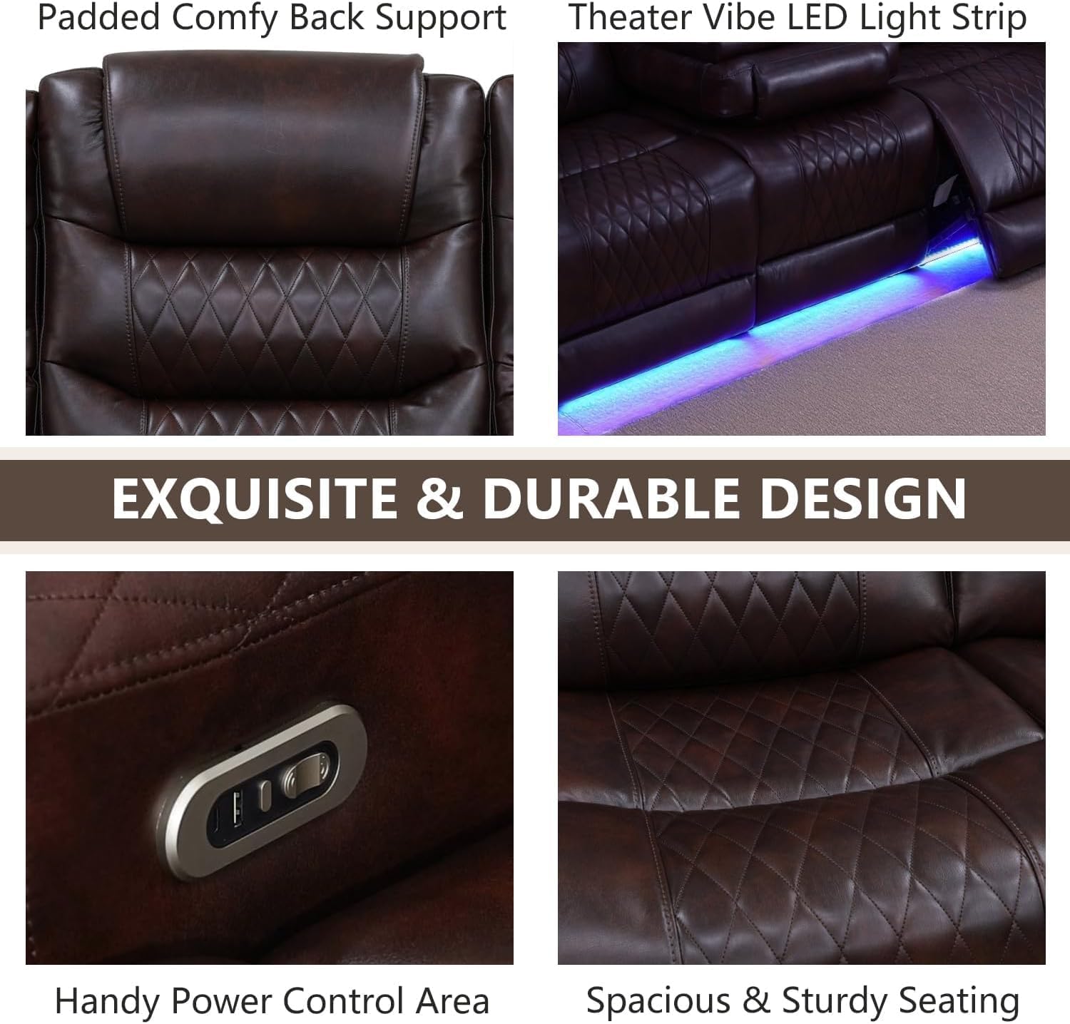 Trygoal Power Recliner Chair, Leather Recliners with Home Theater Seating, Oversized Single Electric Recliner Sofa Breathable Living Room Chairs for Adults Reading Gaming, Brown