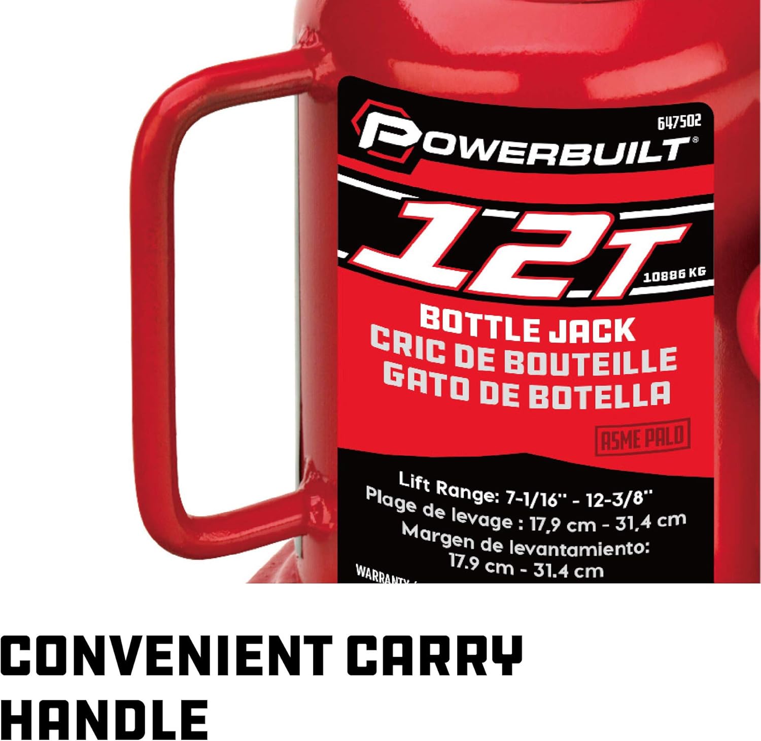 Powerbuilt Heavy Duty 12-Ton Bottle Jack, 24000-Pound Capacity Hydraulic Car Lift, Vehicles, Trucks, Red 647502