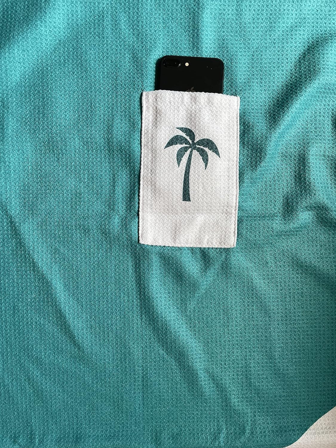 Over-sized towel features a tightly knit, waffle cotton construction that will keep the sand on the beach and the water off of you. Your towel won't slip off of the back of your chair, and for an added bonus, drop your cell in our front-facing pocket and crank up the travel tunes. 68" x 36" fits inside carrying bag Combining modern contemporary style with premium, high-end quality and comfort. Perfect for the beach, pool or cabana. Imported