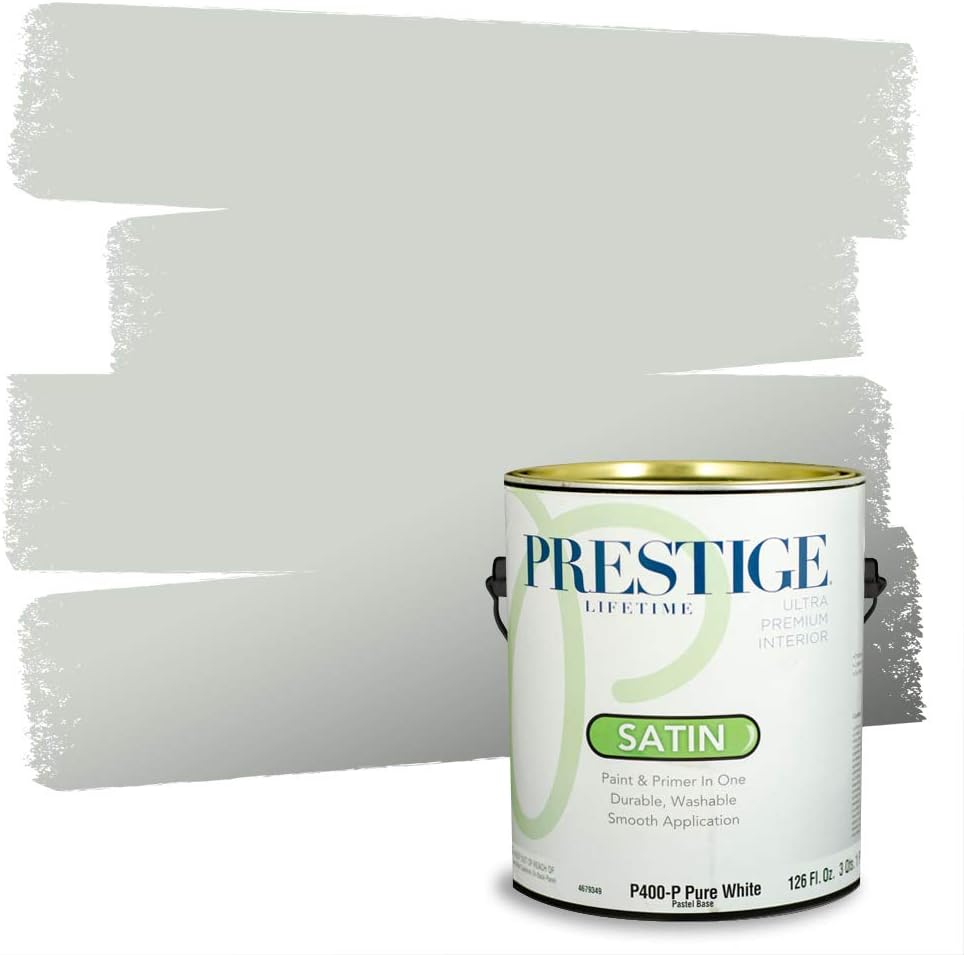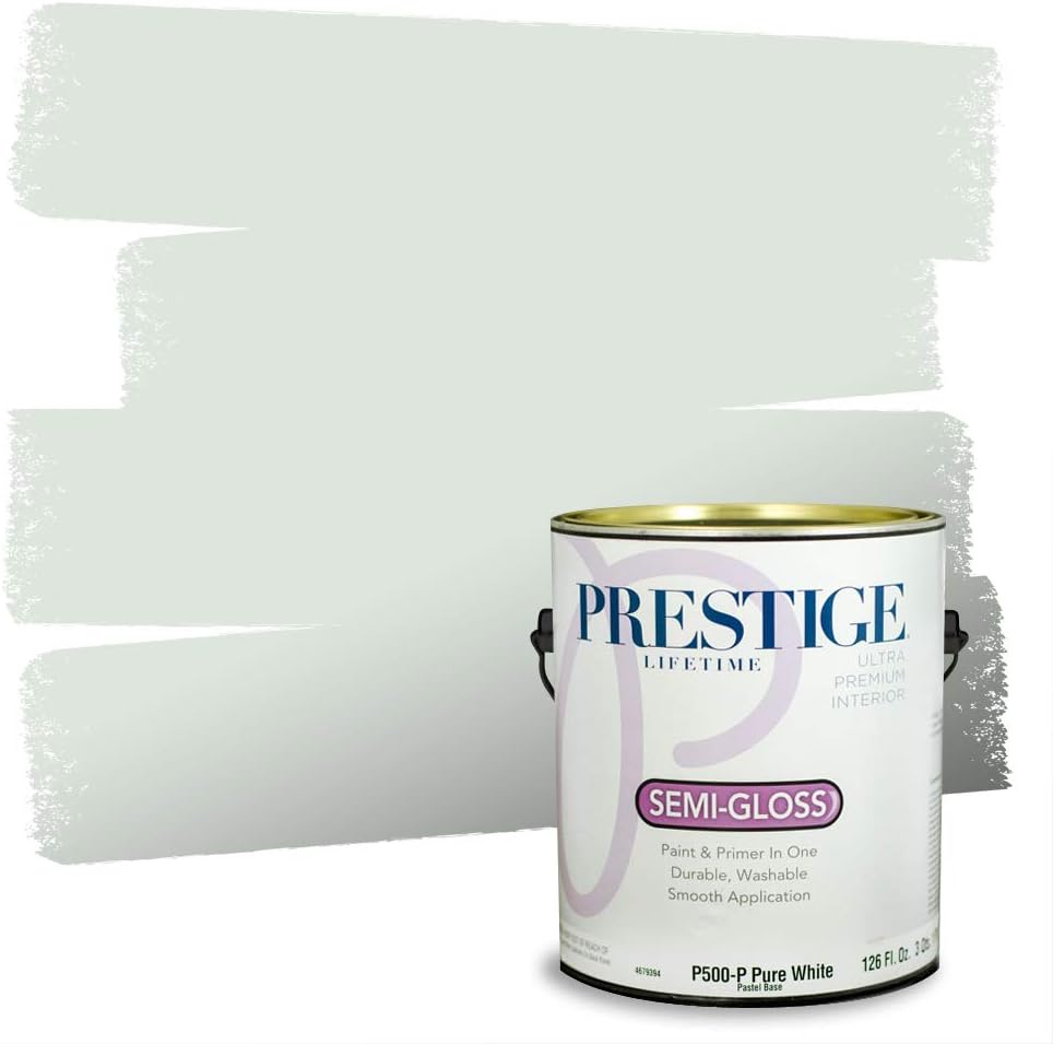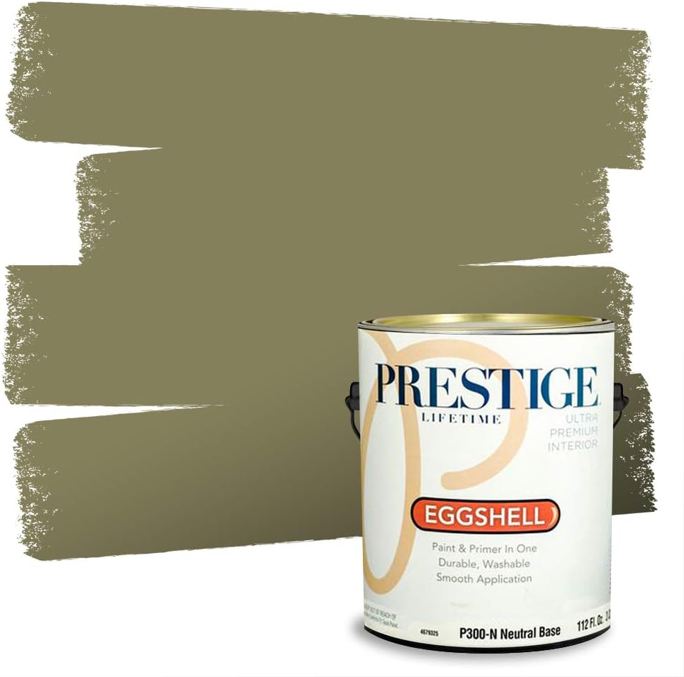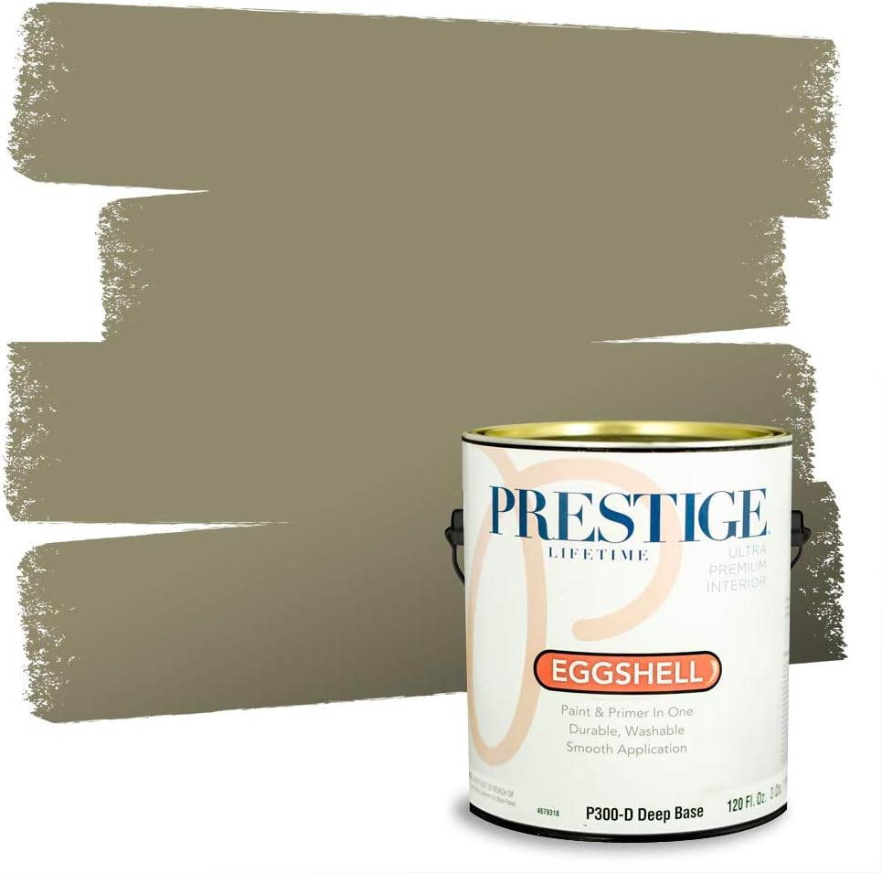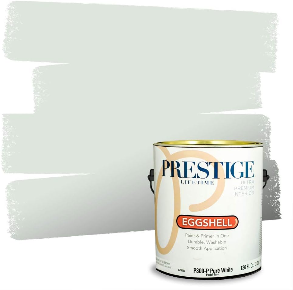 Prestige Paints Ultra Premium Acrylic Latex Interior Paint self-primes over properly prepared uncoated drywall, stucco, plaster or previously painted interior surfaces. Ideal for living rooms, family rooms, media rooms, bedrooms, dining rooms, and hallways. On stained or glossy surfaces use a stain blocking primer sealer. Certain colors may require more than one coat for complete hide. Actual paint colors may vary from on-screen and printer representation. Surface Preparation: All loose paint should be removed. The surface needs to be cleaned with detergent to remove dirt and grease and other contaminants. Rinse well to remove all soap residue and let dry. Scuff sand glossy surfaces and repair all imperfections. Remove dust with a damp cloth and allow to dry. New plaster must be properly cured. Patch cracks and holes, sand smooth when dry, then prime with this product. New woods may require and oil base primer/sealer. On metal use proper Rust Primer. Application: Stir or mix paint before using and intermix all containers for color uniformity. Apply this product as is with a high quality applicator such as a 3/8 inches nap roller cover, brush or pad painter. Thin sparingly with water if necessary for spraying. Dry Time: Dries in one hour. Recoat, if necessary, after four hours. Can clean gently with non-abrasive cleaner after 14 days. Cleanup: Use warm water and soap. An Eggshell finish is always a safe bet. It has a soft, washable look that works well in living rooms, family rooms and hallways. It gets its name from its distinctive effect that gives a painted surface the texture of an eggshell when viewed at an angle in the light. Eggshell finishes are low-gloss, but more reflective than flat sheens. Eggshell also is more easily cleaned than a flat finish and is more durable.