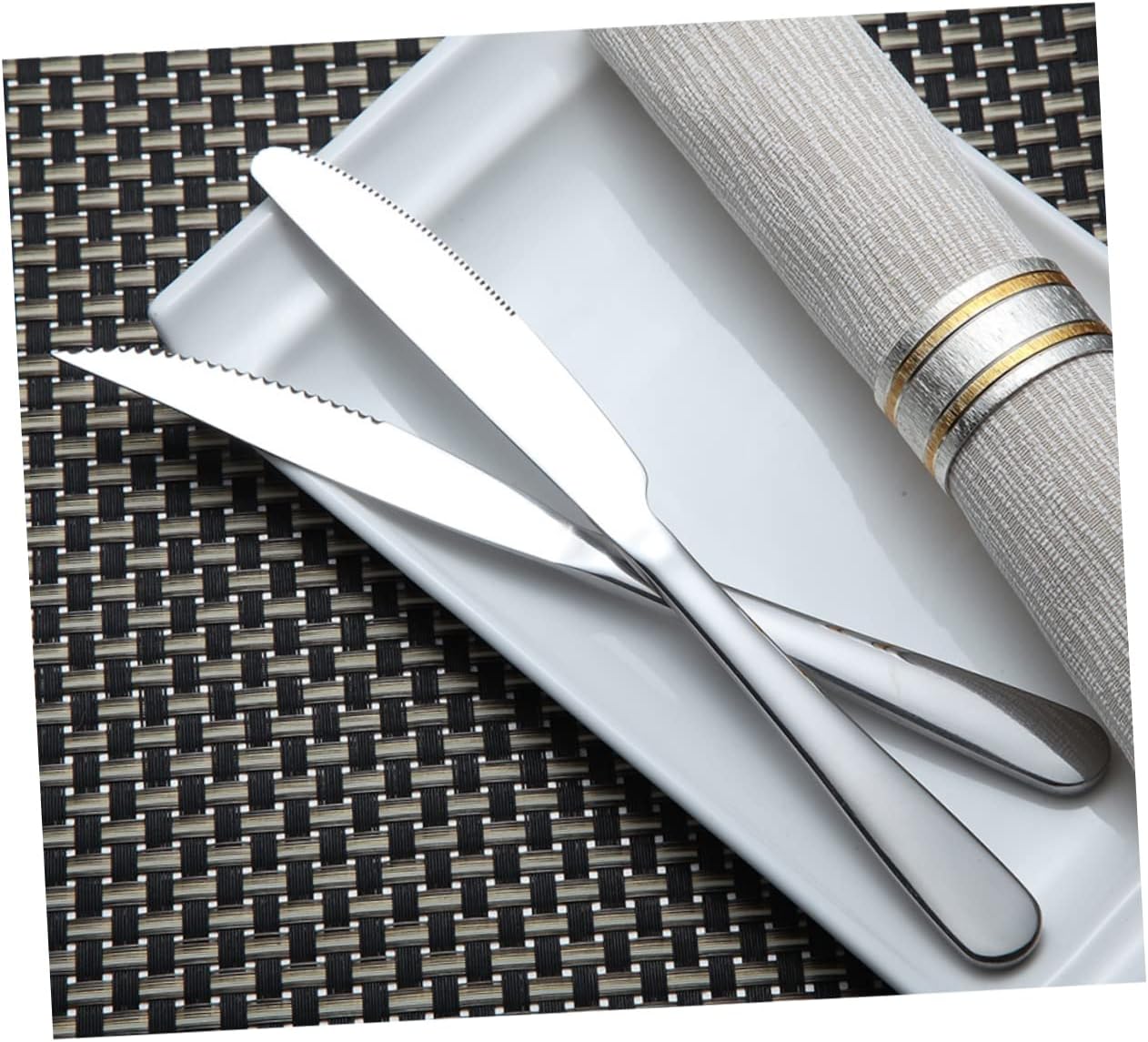 Package Include 1 x set of 12pcs Stainless Steel Flatware Silverware Tableware Cutlery Steak and Dinner Knives Set Characteristics - Color: Silver Stainless Steel Cutlery. - Size: Approx * 25 * 05 cm / 94 * 1 * 02 inch (L*W*H) Flatware Set. - Material: Stainless steel. Dinnerware Set - Great to your friends Stainless Steel Flatware. - Lightweight for portable carry Dinner Set. - Features slender necks with flared handles and serrated edges. - for and long-lasting use. - for cutting steak, chops & pizza. - for brightening up your dinning table for every day used. - Never needs polishing for easy care.Goods InformationStainless Steel Cutlery The stainless steel cutlery set has an innovative handle that will add a of colour to any table setting.Stainless Steel Flatware Also a great to others. This item comes with 6 dinner knives and 6 steak knives, which is manufactured with for and long-lasting use. It is for brightening up your dinning table for every day used