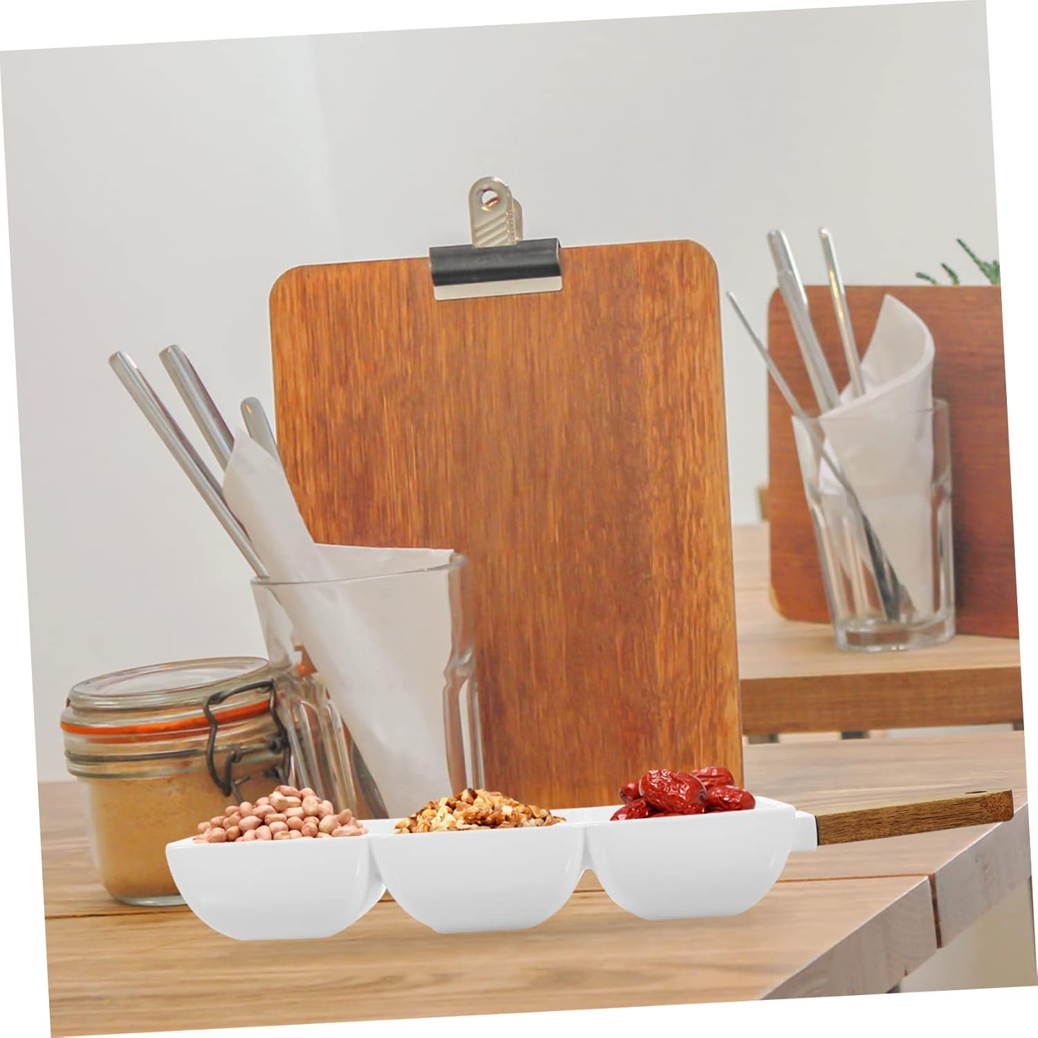 Package Include 2 x Storage Trays Characteristics - Color: As Shown Dessert Plate - Size: 37.50X8.50X4.50cm/14.74X3.34X1.77in Ceramic Divided Plate -Material:Ceramic, wood Condiment Bowl - The material is good and the workmanship is fine, giving you an excellent sense of use. Soy Sauce Dish - The delicate snack dish with wooden handle can be used as a wonderful decoration on your dining table Sauce Dish. - It can be used to decorate the dining table and make the dining table more ceremonial Seasoning Dipping Bowls. - The bowl is made of and material, and , and can be in direct touch with food Appetizer Serving - used for dipping sauce, seasonings, dressings, soy sauce, sauces, appetizers, side dish and so on Ceramic Sauce Dish.Goods InformationSauce Dipping Bowls This three-compartment seasoning storage bowl is simple and beautiful, which can help you store the seasoning and make your kitchen look more comfortable and tidy.Food Plate The design is reasonable and easy to use, which can bring more convenience to your cooking work