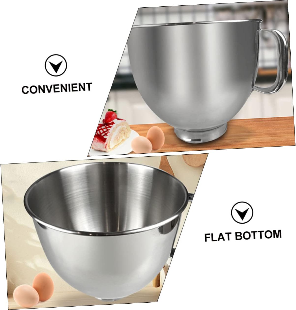 Package Include 1 x Mixing bowl Characteristics -Material:Stainless steel salad bowl -Color:Silver kitchen mixer bowl -Capacity: 5L mixer bowl -Note: The handle style is random mixer replacement bowl -Size:22.00X22.00X19.00cm/8.65X8.65X7 mixer bowl for home. - Stainless steel sturdy construction that the bowl won't wobble or tip over during use mixer accessories bowl. - Mixer bowl is compatible with a range of accessories, including beaters, whisks, and dough hooks mixer bowl stainless steel. - Mixer bowl is for making whipped cream, meringues, and other light and fluffy desserts household bowl. - The bowl for mixer is for mixing batters, sauces, and dough quickly and efficiently mixer bowl stainless. - The bowl is not only compatible for stand mixer, also great for marinating meat and vegetables mixing bowl.Goods Informationmixer attachment Mixer bowl is an essential accessory to compatible with stand mixer.cake accessories Fine workmanship the practicality and durability.mixer bowl replacement Great for used with mixer.mixer replacement bowl This is made of reliable stainless steel material for safe and durable use