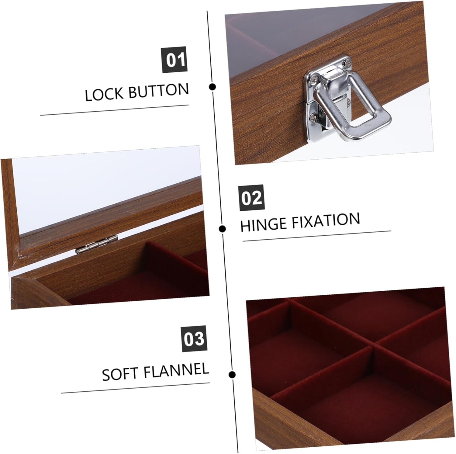 Package Include 1 x Jewelry Tray Characteristics -Elegant vintage design: the vintage aesthetic of this jewelry tray complements any decor, allowing you to display your jewelry collection beautifully desktop decor -Material:Wood, Velvet wood jewelry tray -Secure storage solution: the clasp design ensures your jewelry is safely stored, making it suitable for bracelets, bangles, and other accessories bracelet tray - occasion: this jewelry tray is ideal for personal use, trade shows, and special events such as birthdays, weddings, and holidays jewelry storage tray - wood construction: the outer layer is crafted from sturdy wood, providing a reliable and storage solution for your jewelry household jewelry dish -Soft velvet interior: the inner layer is lined with soft velvet, offering a luxurious feel and excellent protection for your precious items bedroom earring dish -Color:Multi jewelry display dish -Size:35.00X24.00X5.00cm/13.76X9.43X1.97in jewelry storage organizerGoods Informationwooden makeup tray organizer Its construction and elegant appearance make it a must-have jewelry enthusiast.wood jewelry storage tray Keep your jewelry collection organized and easily accessible with this stylish storage box.bedroom earring dish The clear window lid allows you to quickly find the piece you need, while the multiple compartments provide ample space for bracelets and bangles
