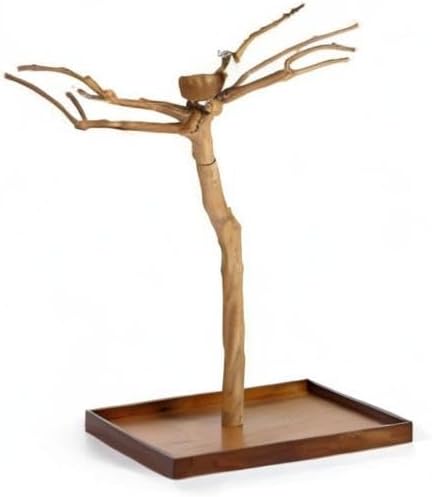 Prevue Pet Products Coffeawood Java Tree Extra-Small Floor Playstand #22621 Style #2 is a sustainably harvested, 100% natural wood product from the Coffeawood/Java tree. Allow your bird to play and explore as it would in the forest by climbing and perching among the gnarled branches. Each playstand has multiple levels and is a unique, one-of-a-kind, natural product – no two trees are alike! Larger than our largest Table Top Mini (#22636) and smaller than our smallest Style #2 Floor Stand (#22623), the #22621 model is perfect for small and medium sized birds like finch, canary, budgie, parakeet, cockatiel, caique, and Quaker parrot. With one food/water cup and two eye screws for hanging toys, this tree is a perfect, condensed size for smaller living spaces. The sturdy base has rubber footers and measures 29.325” long and 19.325” wide, and is approx. 45” tall. Coffeawood trees are a sustainable resource from coffee/java trees that are no longer productive. Photos are representative of the tree style, but are not the actual trees to be purchased. All Coffeawood/Java Trees are natural and unique. Variations in actual items purchased should be expected. Natural materials have natural variations, any minor cracks, natural wood folds and other variations do not constitute defects. Minor assembly required: attach trunk to the base; slide the pins on the tree crown into the trunk; tighten the food/water bowl onto the screw post (do not tighten all the way down to the branches); add toys to the eye screws.