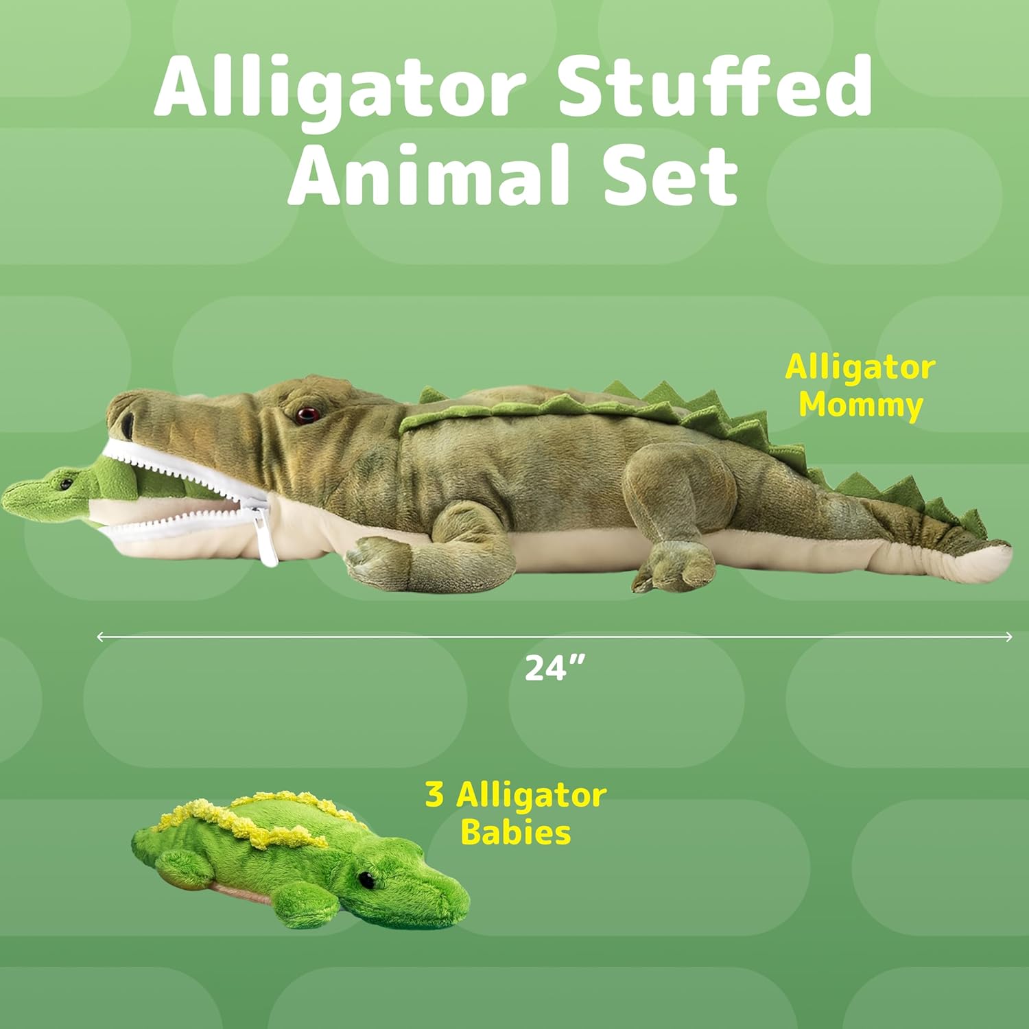 | Additional Features | Patent-pending design, mommy alligator serves as storage case |