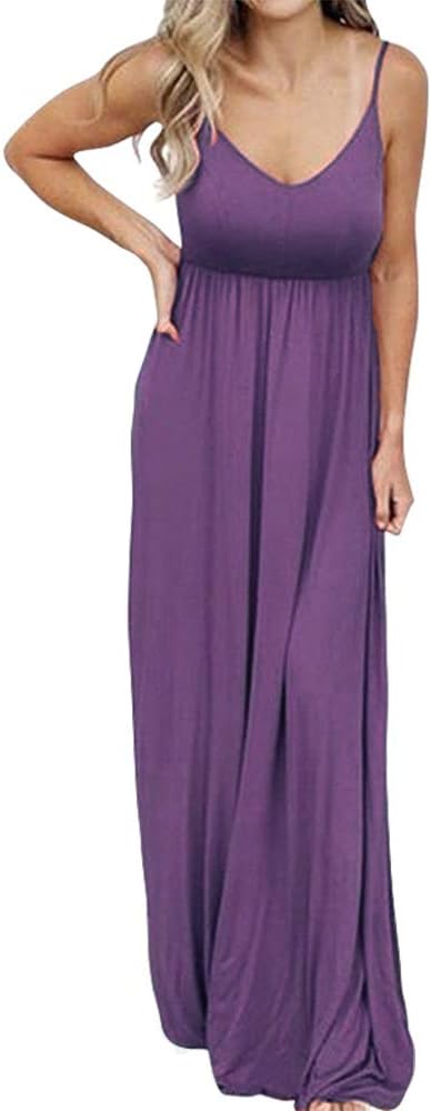 PRIMODA Women's Casual Sleeveless Strappy V Neck Summer Beach Maxi Long DressMaterial: Polyester and Spandex. Soft, lightweight, stretchy and not see throughGender: Women, Lady, Pregnancy momStyle: Simple, Casual loose fitDesign: Sexy V Neckline, Empire Waist, Adjustable Spaghetti StrapType: Maxi dressDress Length: Floor Length/Maxi LengthUnique style, make you beautiful, fashionable, sexy and elegantEasy to pair with sandal ,heels and cardigans. This strappy long dress suits for Casual Daily, Beach, Holiday, Vacation and other leisure occasionSize Information: S--Bust: 82cm/32.28" ; Waist:63cm/24.8" ; Length:142cm/55.91"M--Bust: 87cm /34.25"; Waist:68cm/26.77" ; Length:143cm/56.30"L--Bust: 92cm/36.22"; Waist:73cm/28.74" ; Length:144cm/56.69"XL--Bust: 98cm/38.58"; Waist:79cm/31.1" ; Length:145cm/57.09"XXL--Bust: 106cm/41.73"; Waist:86cm/33.86" ;Length:146cm/57.48"