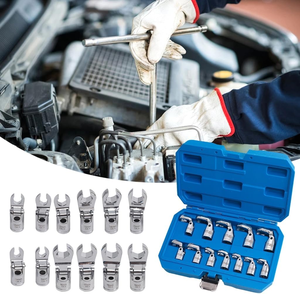 Features: Revolutionize your auto repair toolkit with our specially designing flareing nut wrench set, perfect for tackling hard to reach brake lines and enhancing repair efficiency. This wrench set features a rotation designs that allows for flexible angle adjustments and precise engagement with fasteners. For professional automotive technicians, diyer car maintenance enthusiasts, and automotive repair students seek reliabled tool for intricate brake system work. Whether you're performing brake systems repairs, such as replacing or fixing brake lines, or working car modifications, this wrench set is essential tool for any garage or workshop. Experience the perfects blend of comfort and performances with our ergonomic wrench set, ensuring a comfortable grip and reduced fatigue during prolonged use, making it a top choice automotive hand tool. Specifications: Size:As Picture Shown Note: 1.Please allow 1-2cm errors due to manual measurement, make sure that you donot mind befores you order. 2.Due to the differences between different monitors, the picture may not reflect the actual coloring of the item. Thanks for your understandings. Package includes: 1 Set Brake Line Wrench