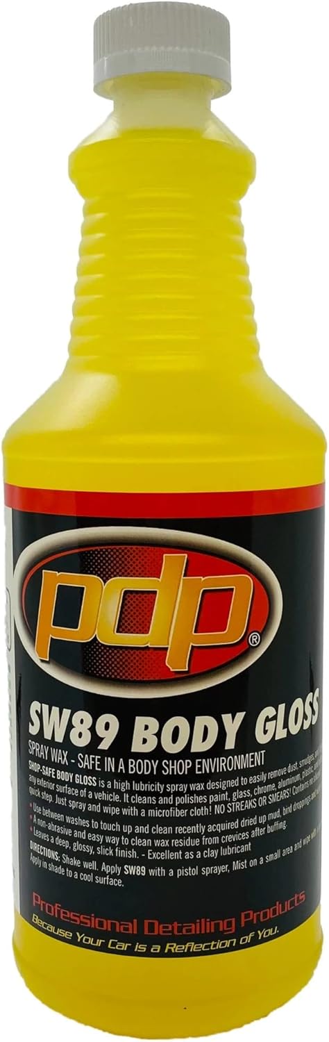 Deep, glossy, slick finish, that lasts thru several rainstormsCan be used with a wet or dry applicationExtremely hydrophobic...watch the rain bead up and roll-offSW89 BODY GLOSS is a state-of-the-art high solid spray wax that leaves a shine with a depth of clarity, high gloss, and durability like no other spray wax on the market today. It easily removes dust, smudges, and fingerprints from any exterior surface, and also cleans and polishes paint, glass, chrome, aluminum, plastic, and rubber trim in one quick step, leaving behind a beautiful durable shine with very little effort. Just spray and wipe with a microfiber cloth! NO STREAKS OR SMEARS! Contains no silicone. Safe in body shops. Use between washes to touch up and clean recently dried up mud, bird droppings, and water spots.Directions:Body Gloss can be applied in at least 3 different ways:1) Mist on a small area and wipe with a microfiber towel2) Wash and rinse vehicle, then spray on and chamois off 3) Spray on a heavyweight microfiber towel, and wipe on