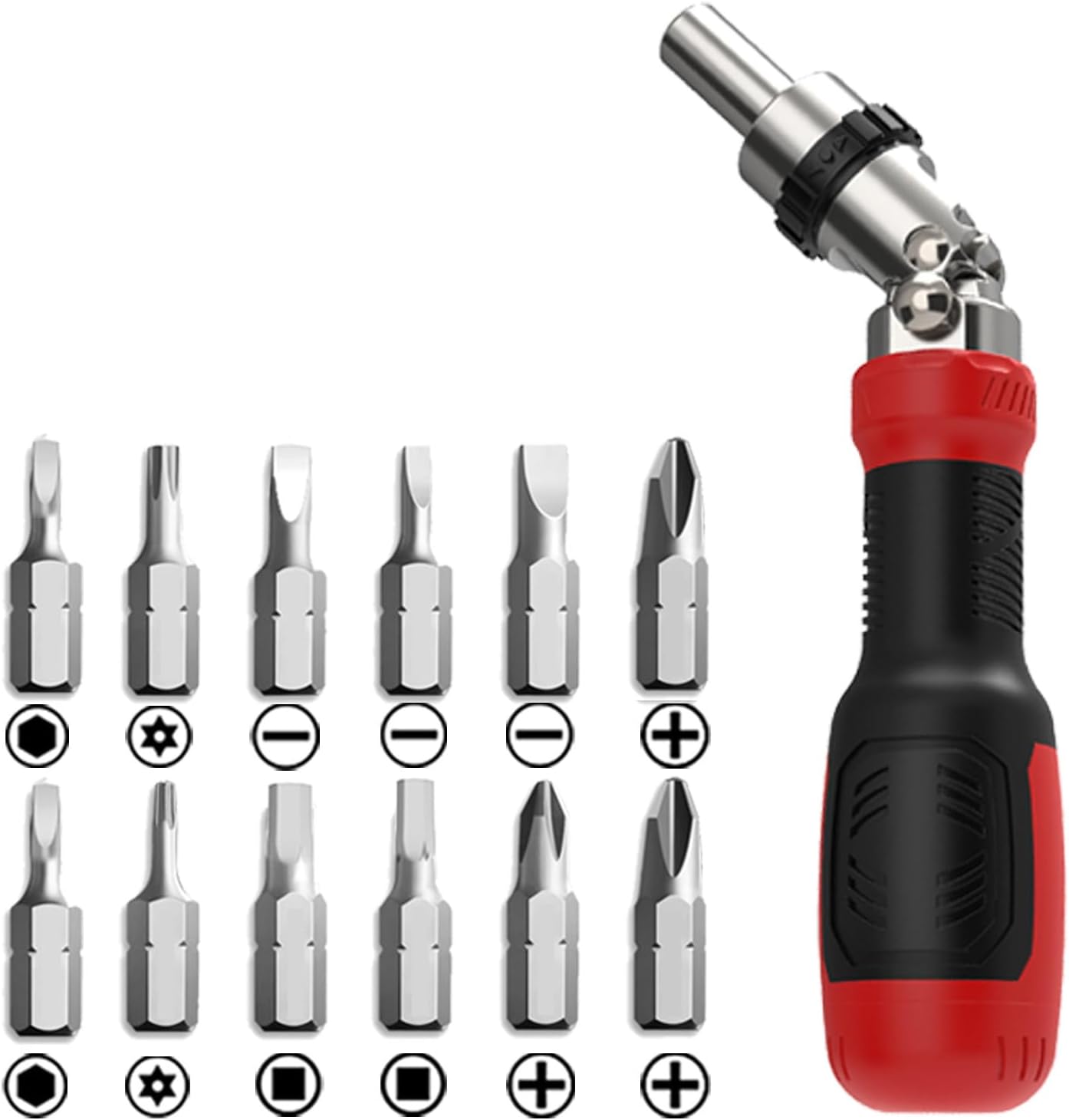 Professional Ergonomic Alloy Steel Ratcheting Driver With 180° Rotating Design Antislip Handle For Precise RepairsFeatures:Premium steel construction with 180° rotating head ensures durability and various access in tight space for ratcheting screwdriver set applications.Alloy gear design enables smooth ratcheting, while the 3 position torques control prevents over tightening and materials damage.Perfect for DIYer enthusiasts, professional technicians, and homeowners requiring precise in furniture assembly or electronic repairs.Conquering angled fasteners in confined areas like engine compartments, electronics, or narrow corners with the multiple bit tool's flexible positioning.Ergonomic nonslip handle maintains stable control during prolonged use, with 12 bit for fast swapping without dropping.Specifications:Component: alloy steelSize: Suitable for a variety of standard screwsColor: black/red Use scenario: home repair | electronic equipment disassembly | automobile repair and other multifunctional applications;Package Includes:1 Set Ratcheting ScrewdriverNote:1.Please allow 1-2cm errors due to manual measurement, make sure that you donot mind befores you order. 2.Due to the differences between different monitors, the picture may not reflect the actual color.Thanks for your understandings.