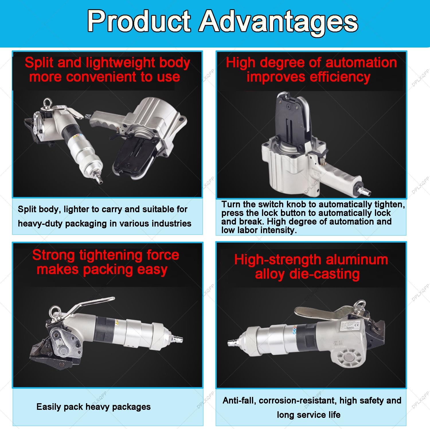 ★ Product Specifications:Pneumatic Steel Strap Tensioner:Applicable Strap: Steel StrapOperating Mode: PneumaticAir Pressure: 0.49-0.63 MPaBundle Width: 19-32 mmBundle Thickness: 0.8-1.2 mmNo-Load Steel Strap Speed: 85 mm/secTension Force: 8500 NWeight: 4.1 kg★ Pneumatic Steel Strap Sealer:Bundle Material: Steel StrapOperating Mode: PneumaticAir Pressure: 0.49-0.63 MPaSealing Force: 15 kNBundle Width: 19/25/32 mm (Select the desired width)Bundle Thickness: 0.8–1.2 mmSealing Method: Metal BuckleSealing Type: Single Clip BuckleWeight: 3.1 kg★ Note: The pneumatic assembly must be connected to an air pump and use a compressed air source between 0.49 and 0.63 MPa. Insufficient air pressure will affect the packaging process.★ Packaging Contents:Steel belt tensioner * 1Steel belt sealer * 1Mounting accessories * 1 set★ Customer service:If you have any questions about our products, please feel to contact us and we will reply to you within 24 hours.