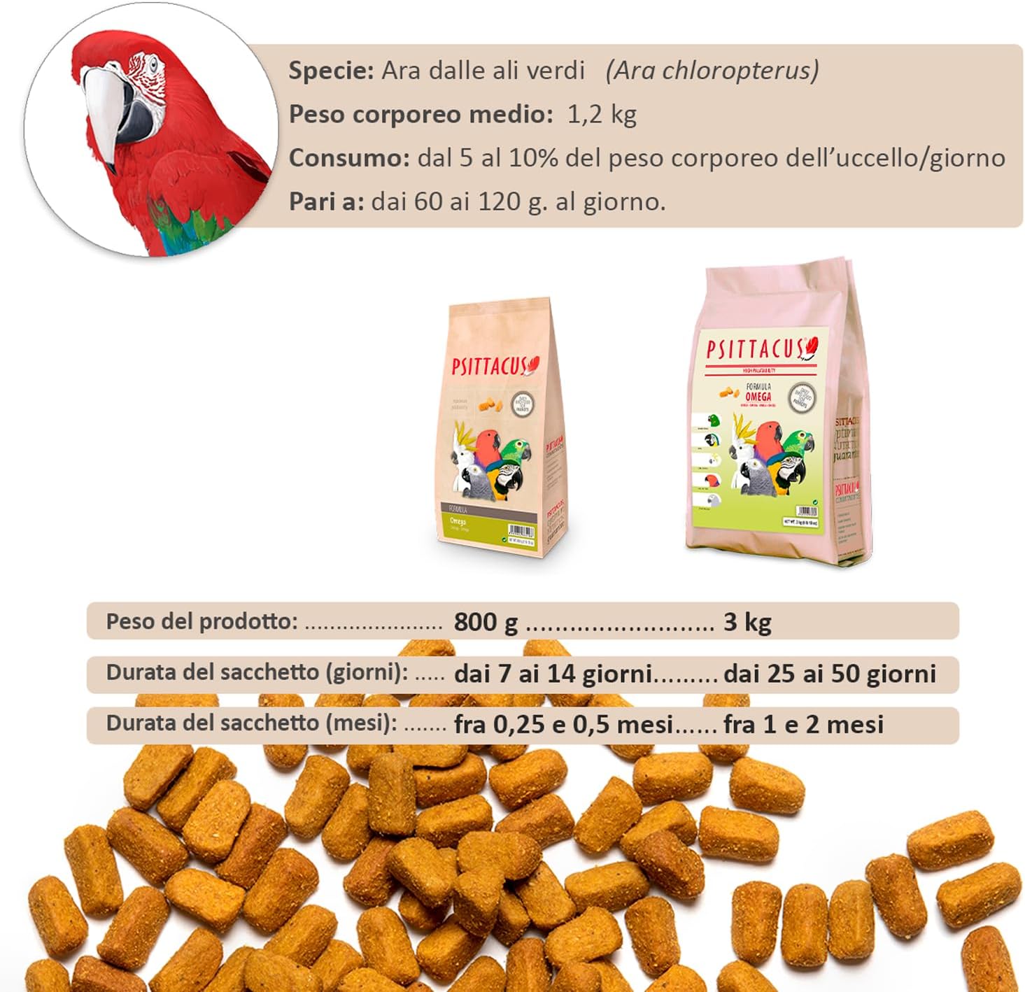 | Specific Uses For Product | Bird’s consumption of Omega varies between 5 and 10% of body weight. PSITTACUS daily diet should constitute no less than 70-80% of the overall diet by weight. It can be offered without limitation to the recommended bird species (macaws, African Greys, Senegal parrots). No vitamin or mineral supplements should be given to parrots whose staple food is PSITTACUS daily diets. Omega may be offered exclusively or as a complement to several psittacine birds of medium and large-sized species. We recommend restricting the amount in species that tend to gain weight such as amazon, cockatoo, ring-neck parakeet, and eclectus. Once the package is opened, store in an air-tight container in a cool, dry place. |