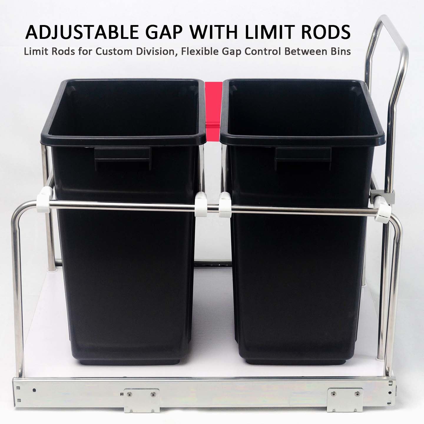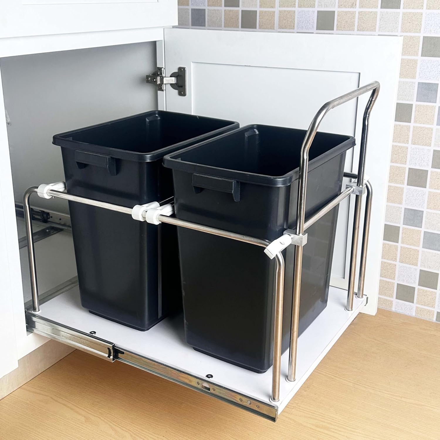 | Additional Features | Adjustable for 1–3 Waste Bins of Various Sizes, Elegant Curved Stainless Steel Handle with Comfortable Grip, Full-Extension Heavy-Duty Soft-Close Slides, Load-bearing up to 100 lb, Sturdy Wood Base Support |