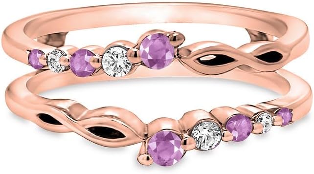 This Enhancer Crafted In 925 Sterling Silver, Available In 14K White, Yellow And Rose Gold Plating. Round Cut Simulated Purple Amethyst & White Diamond Set in Prong Setting.