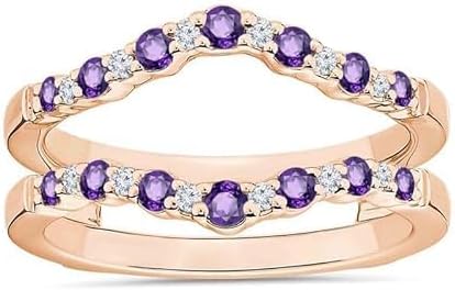 Purple Amethyst & White Diamond V Shaped Contour Matching Enhancer Guard For Women, 14K Yellow/Sterling/Rose Gold Finish Amethyst Anniversary Chevron Wrap Ring