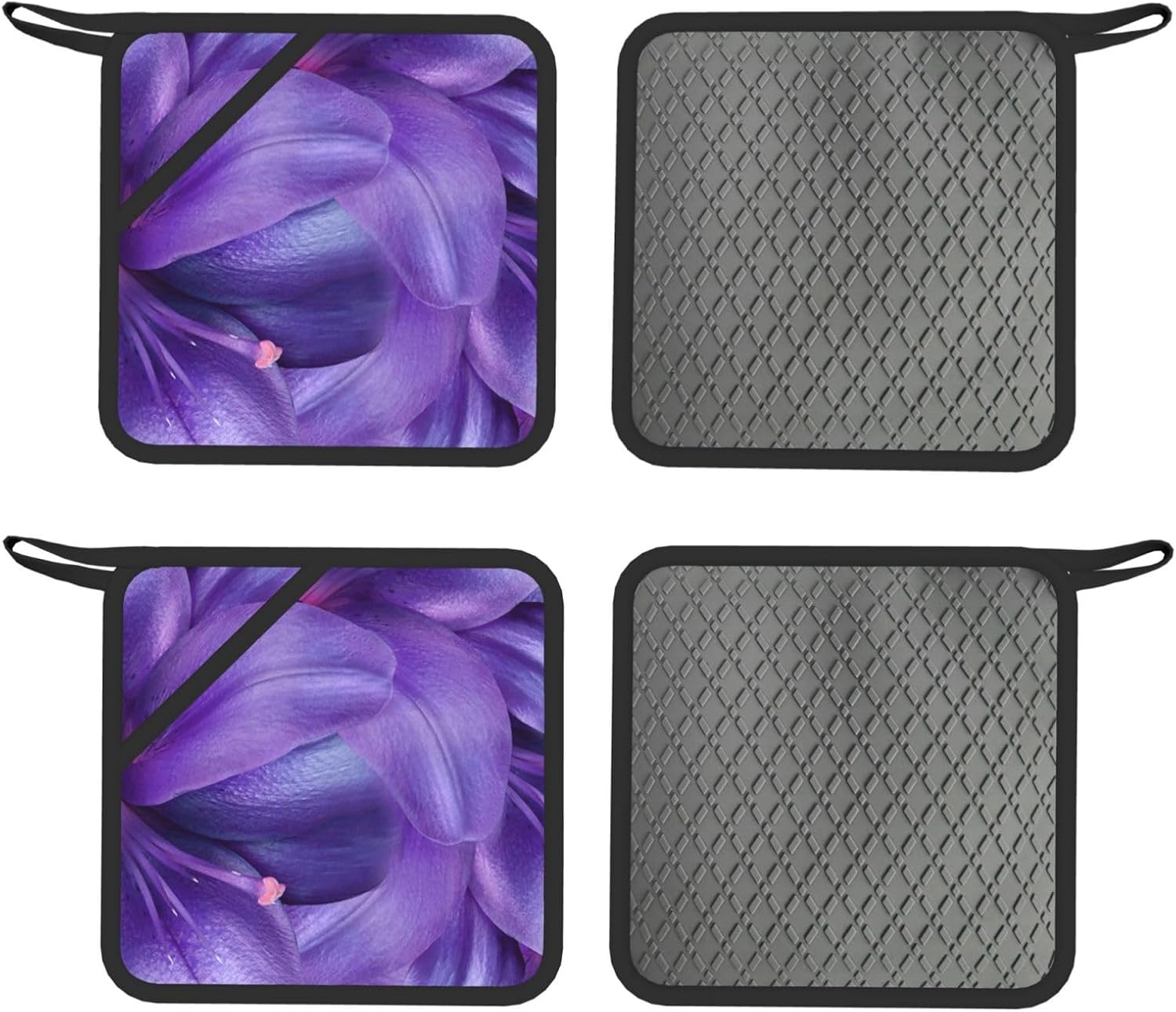 Upgrade your kitchen essentials with this oven mitts and pot holders set, designed for safe and comfortable handling of hot cookware. The set includes 2 heat-resistant oven mitts and 2 pot holders with pockets, making it a practical choice for daily cooking, baking, grilling, and microwave use.Crafted from high-quality polyester with thick insulated padding, these kitchen gloves deliver reliable heat protection up to 260°C. The soft quilted lining ensures comfort and flexibility, while the silicone palm design enhances grip and control when handling hot pots, pans, and trays.The non-slip silicone surface provides added stability, giving you confidence when moving hot cookware. Waterproof inner and outer layers make cleaning simple—just wipe clean or hand wash and air dry for easy care.Each piece features a convenient hanging loop for organized storage and quick access in your kitchen. Stylish and functional, this oven mitts set also makes a thoughtful gift for family and friends on holidays, housewarmings, and special occasions.