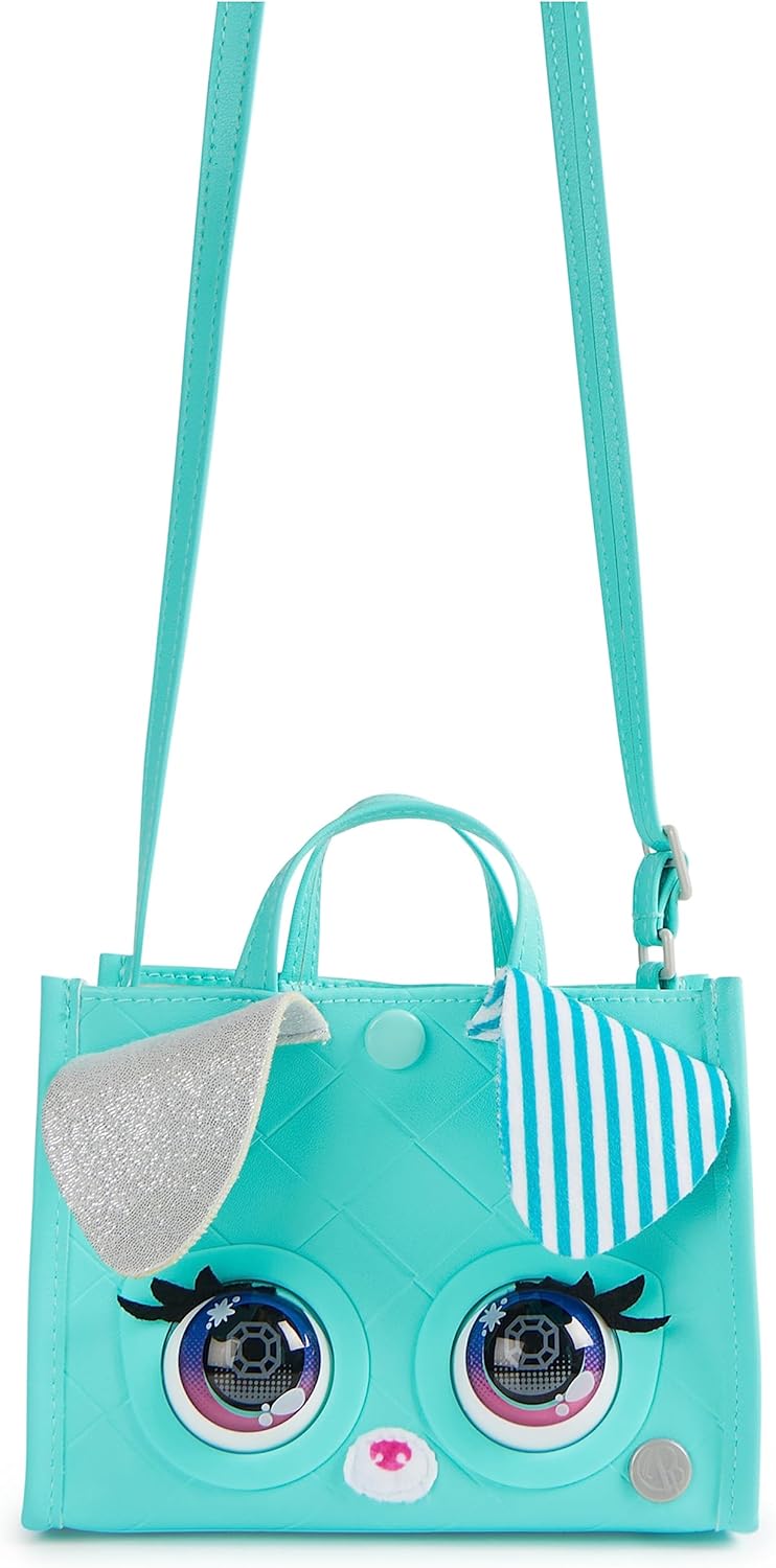 Bring your look to life with Purse Pets Quilted QTs purses for girls! These interactive tote bags (perfect girls gifts) are packed with purse-onality. They respond to your touch, really blink and have over 30 new sounds and reactions! VIPooch features teal woven faux leather fabric, metallic silver and striped puppy ears, pop-art inspired eyes and a snap closure. With double straps, carry VIPooch with the handles or extend the longer strap up to 40 in. to wear as a shoulder bag or cross body bag! On-the-go, touch her head for cute sounds and make her blink. Hold her forehead and she’ll blow a kiss! Push the insignia to unlock more ways to play. In Magic Mode, play games and dance to her beats! Have a staring contest with your new BFF and rock your runway look to the music – she’ll cheer on! Customize with Luxey Charms (sold separately) for the ultimate Purse Pets mashup! Measures approximately 5 in. (H) x 6.5 in. (W) x 2.4 in. (D); 3 AAA batteries included. Purse Pets interactive toys for kids are great birthday gifts, Christmas gifts, stocking stuffers or gifts for girls for any occasion. Express your style with Purse Pets VIPooch!