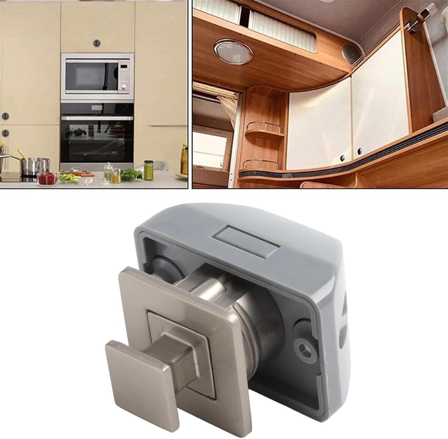 Product description Features:*Made of Zinc alloy material, and practical to use*This lock is a new type with handle button type ship, yacht, RV.*The lock itself with both locking function also handle function.*Suitable for all kinds of furniture has the beautiful appearance, color ele, simple installation, convenient to use.*To avoid all kinds of yacht, boat, RV shaking in the process of for moving and cause indoor furniture cupboard door open.Specifications:*Product Name:Catch Lock *Material:Zinc alloy*Size:As shown*Color:BrushedPackage Contents:1 x Button Catch Lock(including mounting accessories) Manufacturer Contact Information no