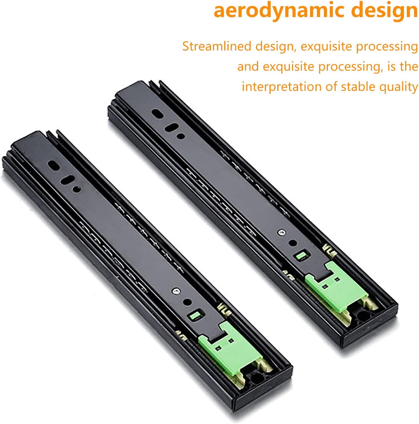 Detachable & 3-section full pull: Detachable internal guide rail (to remove the tool from the drawer), fully extended noiseless ball bearing drawer slide rail.The drawer slides equipped hydraulic damper which allows the slides achieve soft close effect.Spring design make less noise when close and open, create a warm and quiet family environment for you.Push to Open DesignPush to open and close which will release your hands when busy in cooking or carrying, also preventing drawer from slamming shutSolid Ball BearingProvides smooth and friction-free motion when open drawer3-Fold SlidesEnable the slides to fully extendSeparableThe third slides can be separated. Easy for installing.Product name: rebound drawer guideMain material: cold rolled steelMain purpose: drawer installationSuitable range: cabinets, drawers, etc.Product color: black electrophoresisInstallation method: side-mountedNote: The dimensions of the drawings below are for reference only.45mm Soft closing full extension three section ball bearing drawer slider