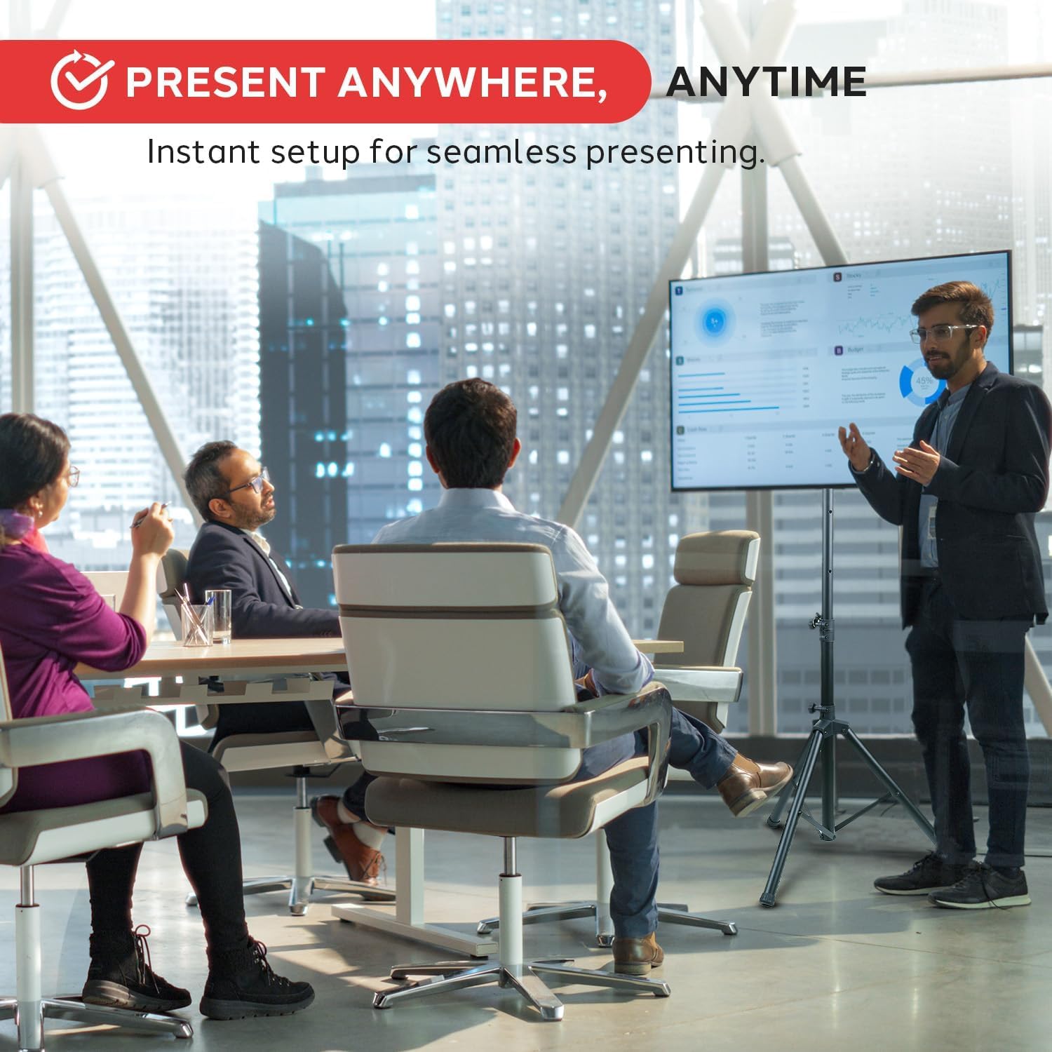Pyle Model : PTVSTNDPT3215Portable Tripod TV Stand MountTripod TV Stand Portable Flat Panel Television & Monitor TV Mount Stand, Height Adjustable (for TVs up to 32’’)Features:Portable TV StandUniversal Standard Vesa TV Mount CompatibleQuick Setup & HassleFree Screen Display PlacementCompatible with All of Today’s Latest TVs, Monitors, Display ScreensTilt & Height Adjustable with Locking MechanismReinforced Metal ConstructionAntiSlip Padded Rubber LegsHeavy Duty, Rugged & ReliableFoldable TV Tripod Design for Easy Setup & StorageWorks with LCD, LED, Smart, 3D, Plasma, Flat Panel TVs, etc.Perfect for the Home, Office, Classroom or StudioTechnical Specs:TV Size Compatibility: Up to 32’’ inches, MaximumVESA Compatibility: 75x75, 100x100Height Adjustment: 32.3’’ 59.8’’ inchesTilt Adjustment: 0 360 DegreesConstruction Material: Steel AlloySteel Tube Thickness: 1mm (0.04’’)Max. Weight Load Capacity: 22 lbs.Folded Dimensions: 34.2’’ x 4.5’’ x 3.9’’ inchesTotal Assembled Dimensions: 27.5’’ x 27.5’’ x 59.8’’ inchesThe Pyle Portable Tripod TV Stand Universal Television & Flat Panel Monitor Stand Mount (for Display Screens up to 32’’) Universal Standard VESA Mount Compatible with All of Today’s Latest TVs, Monitors, Display Screens Tilt & Height Adjustable with Locking Mechanism HassleFree & Portable Screen Display Placement Foldable Tripod Design for Easy Setup & Storage Heavy Duty, Rugged & Reliable Reinforced Metal Construction AntiSlip Padded Rubber Legs Works with LCD, LED, Smart, 3D, Plasma, Flat Panel TVs, etc. Perfect for the Home, Office, Classroom or Studio Technical Specs: Maximum TV Size Compatibility: Up to 32’’ inches VESA Compatibility: 75x75, 100x100 Height Adjustment: 32.3’’ 59.8’’ inches Tilt Adjustment: 0 360 Degrees Construction Material: Steel Alloy Folded Dimensions: 34.2’’ x 4.5’’ x 3.9’’ inches Total Assembled Dimensions: 27.5’’ x 27.5’’ x 59.8’’ inches.