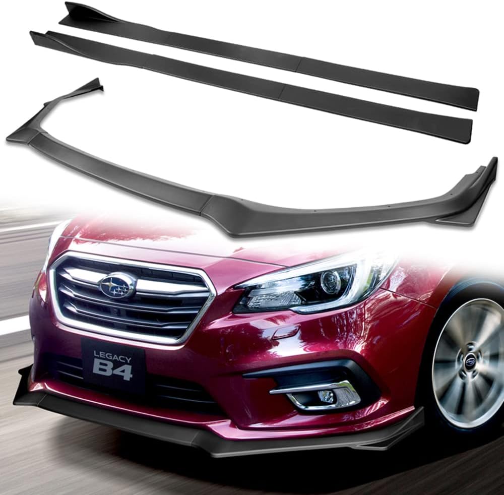 Compatibility:Compatible with 2018 2019 2020 Subaru LegacyPackage includes:1 x 3 Piece Front Body Kit Bumper Lip1 x 6 Piece Side Skirt Extensions Splitters DiffuserINSTALLATION INSTRUCTION IS NOT INCLUDEDBumper Lip (3PCS) Features:100% Brand New that has never been used or installedGreat Upgrade For Your vehicle's exterior lookEasy installation ( Professional installation required )Improves the aerodynamics of Your VehicleGives your vehicle an improved appearance and StyleMade From High Quality ABS that is Very Flexible and won't CrackGives your vehicle a sporty ang aggressive lookSide Skirt Extensions Diffuser (6PCS) Features:100% Brand New that has never been used or installedGreat Upgrade For Your vehicle's exterior lookEasy installation ( Professional installation required )Improves the aerodynamics of Your VehicleGives your vehicle an improved appearance and StyleMade From High Quality ABS that is Very Flexible and won't CrackGives your vehicle a sporty ang aggressive lookSize: 59" x 4"