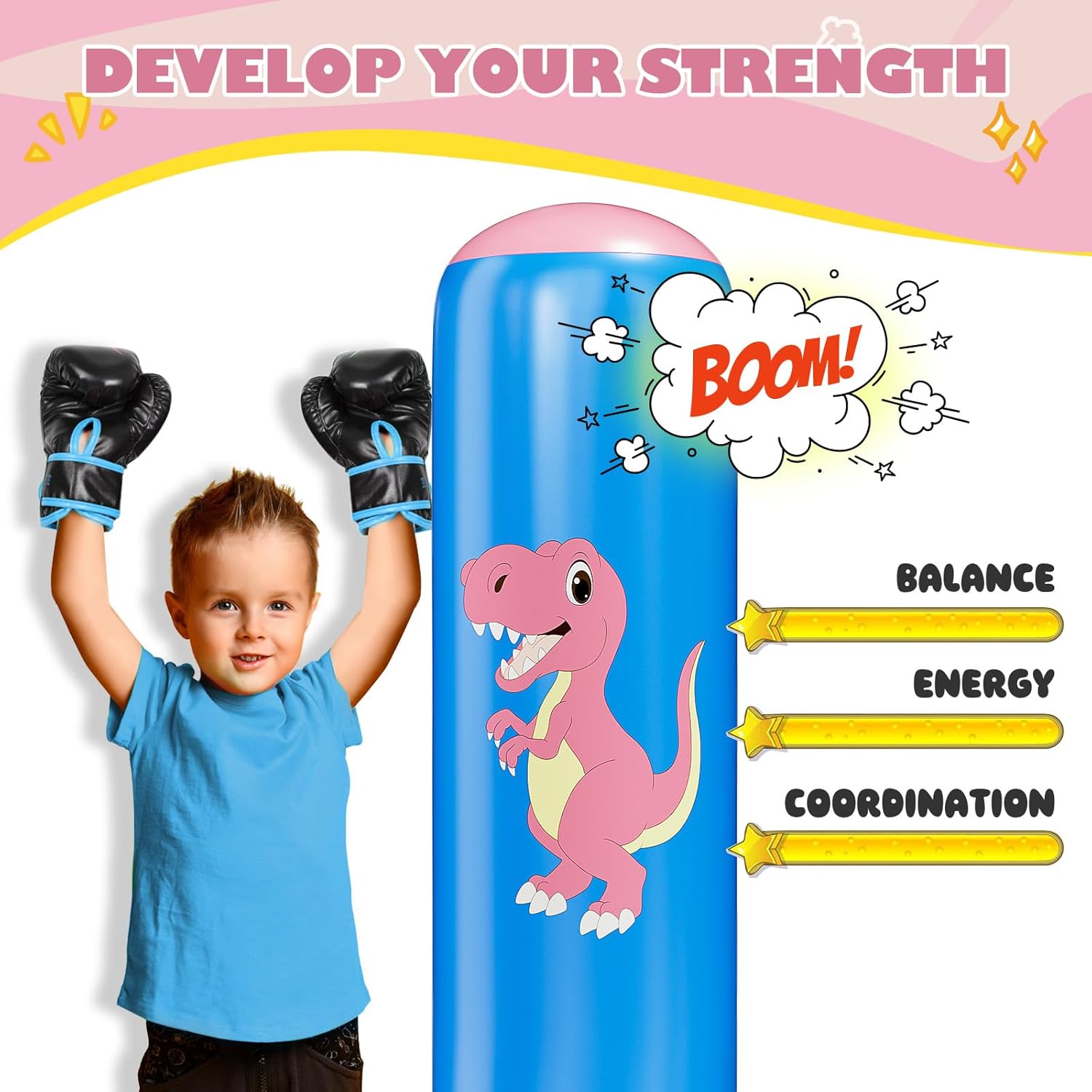 Are your little ones full of energy and looking for a fun way to channel it? Look no further! Introducing QPAU Inflatable Punching Bag from Fight for Love boxing series for kids to live an active and entertained childhood to protect their family. This colorful karate punching bag sizes is 48 inches for kids aged 3 to 8. It's a great size for practicing boxing skills and spend fun time with family. At QPAU we value the safety of the children. This durable blow up punching bag is made from non-toxic PVC material, ensuring hours of safe and energetic play for your little champions. To ensure the stability when playing fill the base with water to keep it firmly in place, even during the most enthusiastic punches! With each QPAU kids punching bag, you get a pair of FREE boxing gloves, specially sized for small hands. It's perfect for indoor playrooms or even outdoor spaces. Your kids will feel like real boxing champions! QPAU Inflatable Standing Punching Bag for Kids is the ultimate accessory for active playtime and teaching your kids to “Fight for Love”.
