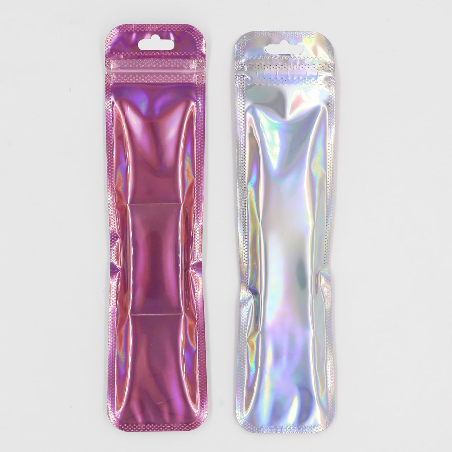 Made from a holographic, clear material, these bags come with a unique butterfly hang hole, allowing you to hang them up wherever you please, or easily clip them onto other items. They are also resealable with a convenient zipper, keeping your items safe and secure. Whether you're looking to take accessories to go or take your jewelry and cosmetics on vacation, these bags are the perfect solution. Plus, their unique design ensures that your belongings stand out from the crowd.