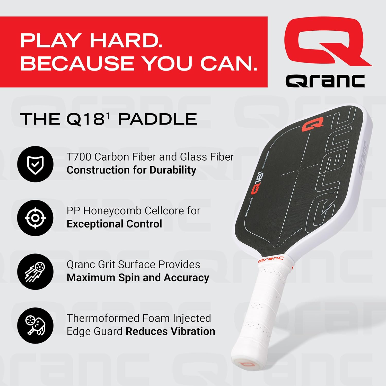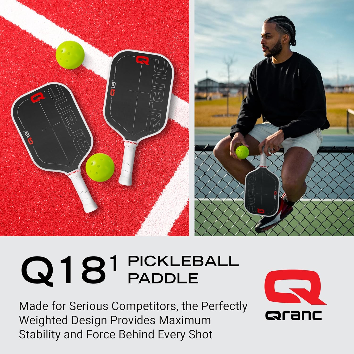 DESIGNED FOR STABILITY AND POWER: The pickleball paddle has a perfectly weighted design (8.3-8.7 oz); at 18mm,16mm,14mm it’s our thickest paddle in the Qranc line, providing stability and force behind every shot; made for serious competitors