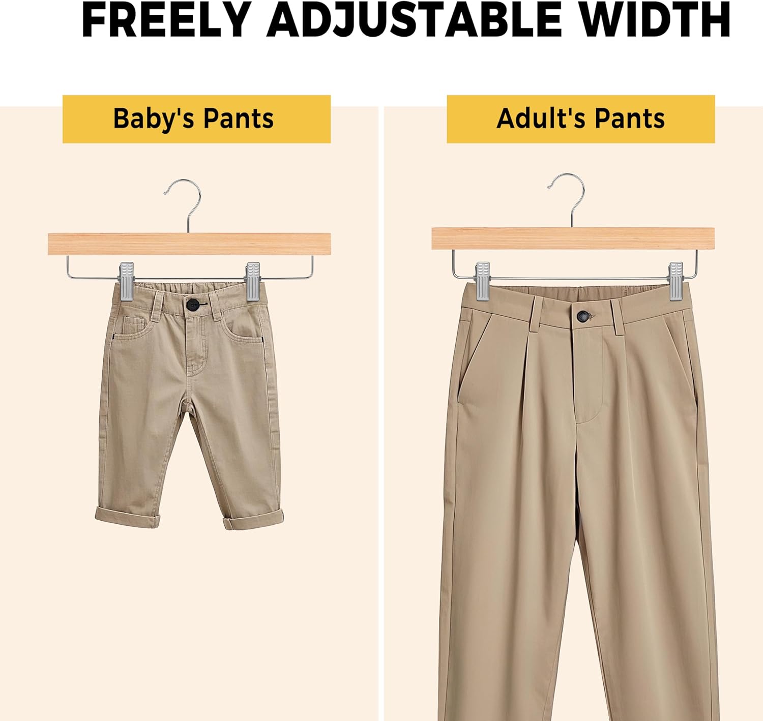 This bundle includes 30 premium plywood coat hangers and 20 plywood pants hangers from Quality Hangers, designed to organize and maximize closet space efficiently. Both sets feature a natural finish, slim profile, and durable construction with swivel hooks and anti-slip properties for convenient clothing care.