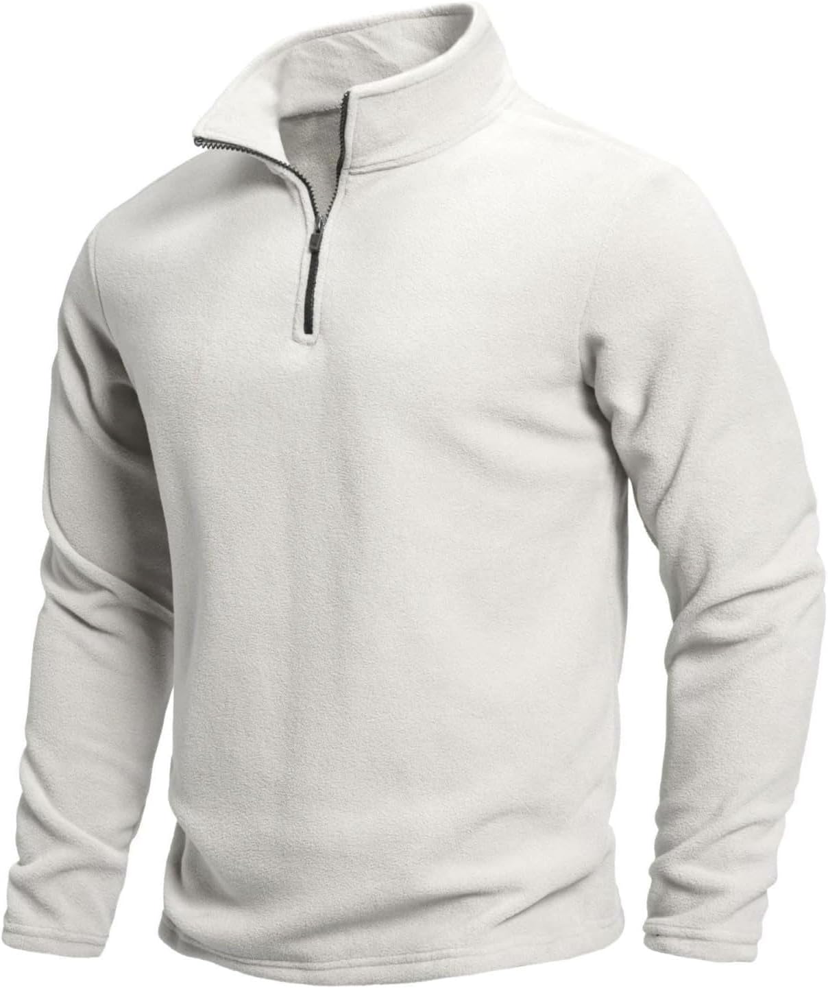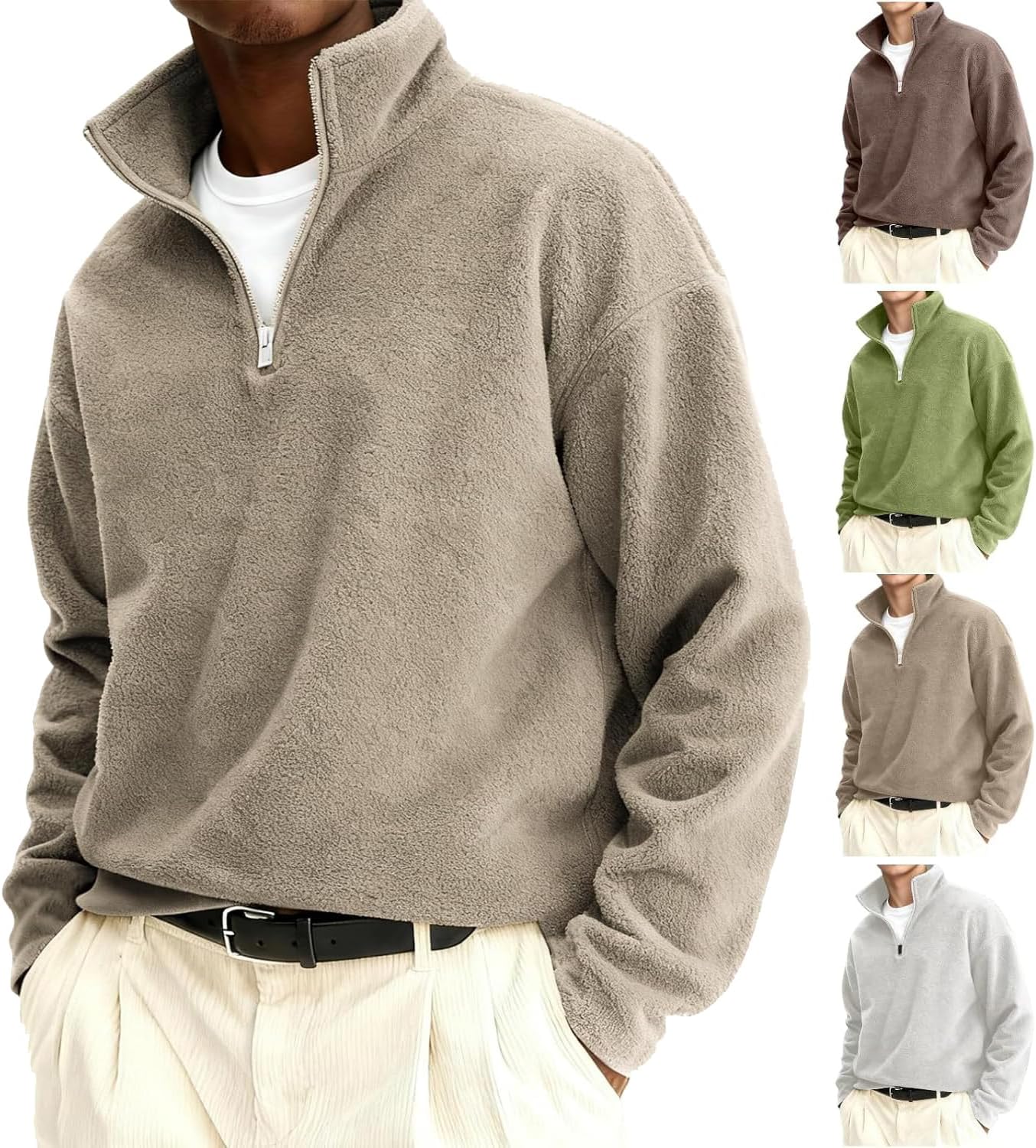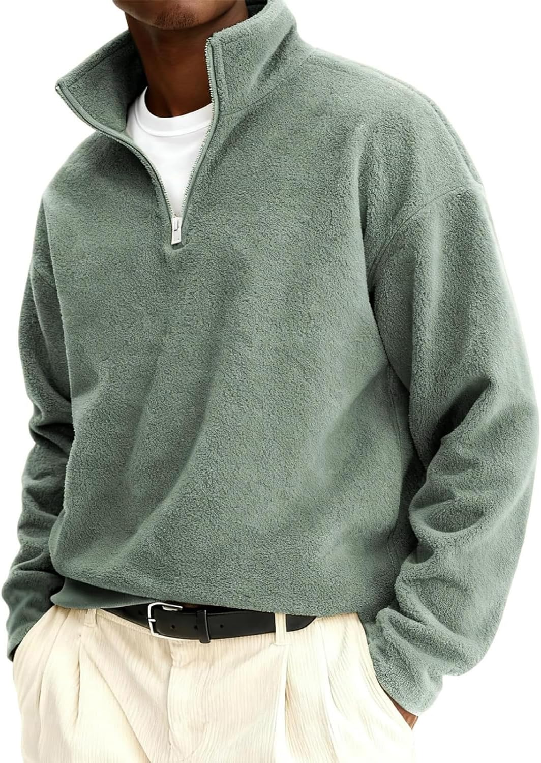 Features: 1.Retro Stand Collar 2.Premium Fabric 3.Quarter Zip 4.Long Sleeve 5.Versatile Matches shorts, jeans, chinos Specification: Name: Quarter Zip Mock Neck Sweatshirt Material: 95% Polyester, 5% Spandex Neck: Quarter Zip Sleeve: Long Seleeve Pattern: Solid Fit: Loose Fit. We recommend sizing up Care: Machine Wash Cold, Tumble Dry Low Packing Includes: 1 PC *Polar Fleece Quarter Zip Pullover for Men Notes: 1.Please Allow Slight Dimension Difference Due To Different Manual Measurement. 2.The Color Maybe A Little Difference Compare The Image With Actual Item Due To Monitor Reflect.