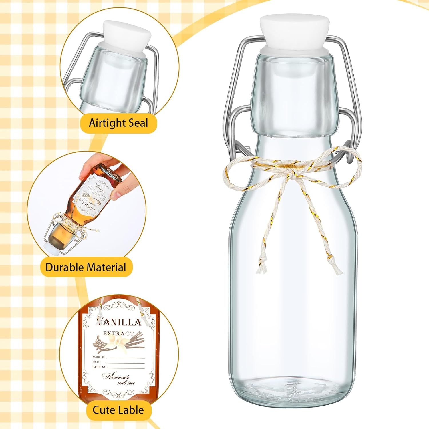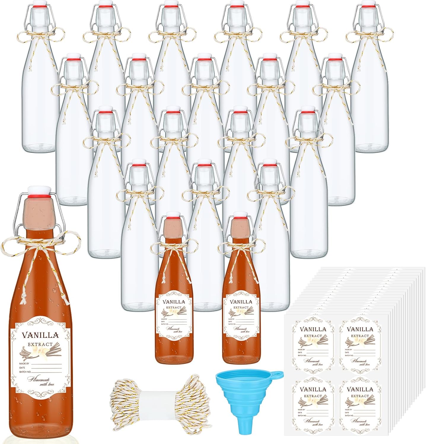 | Included Components | 20 x Flip top glass bottles with stoppers ,21 x Round stickers,1 x Rope,2 x Folding Funnel |