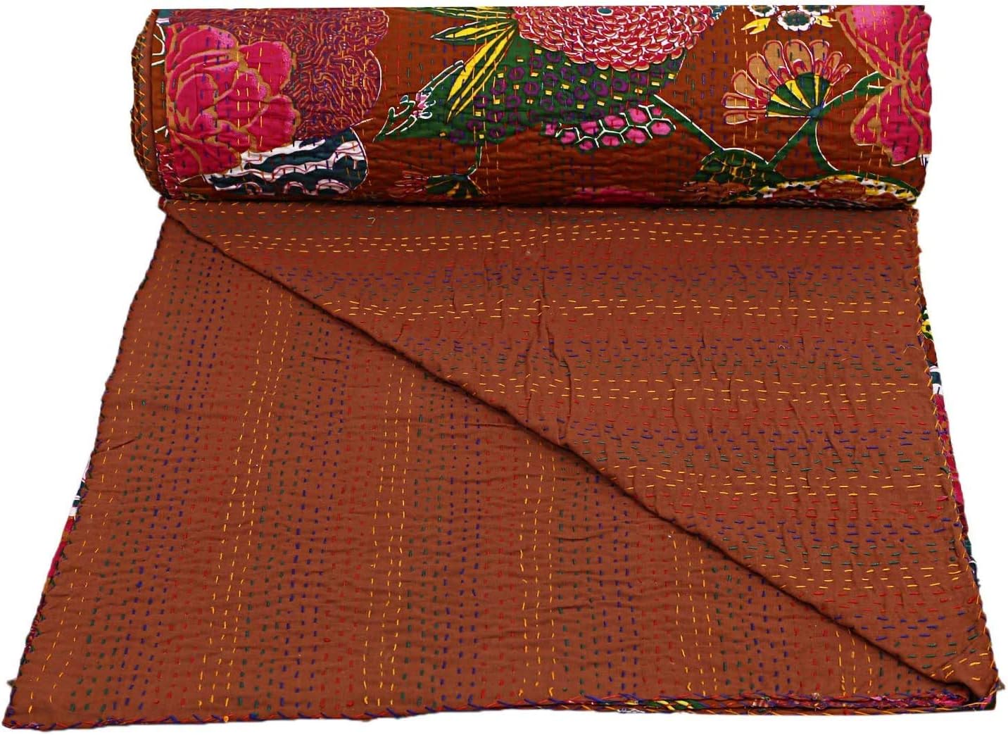 Made with 100% cotton and natural vegetable colors. This piece is of art is completely hand stitched by Women artisan in Rajasthan, India. It can make any room alive with its vivid colors, stunning Fruit Floral print and embroidery, made using traditional and famous kantha hand embroidery method. Made from two thin layer of cotton fabric make this piece of art irresistible and also very comfortable. Adding to it's style, this kantha quilt is reversible and both sides can be used. Kantha is still the most popular form of embroidery practiced by rural women.typically use old saris and cloth and layer them with kantha stitch to make a light blanket, throw or bedspread. These cotton lightweight "Quilts" with a beautiful and colorful Paisley design can be used as 1. Bedspread , Bedding Throw , Blanket Or Quilt 2. A Summer Bed Cover 3. A Throw 4. A Fabulous Picnic Rug 5. Nice Bedroom Quilt , This can fit to a 90 x 108/60*90/108X108 inch's wide King/Twin size bed as blanket or throw or can easily fit as bedspread / bed cover to King/Twin bed .Size Twin (60X90), Queen Size (90X108 inch), King Size (108X108) inch